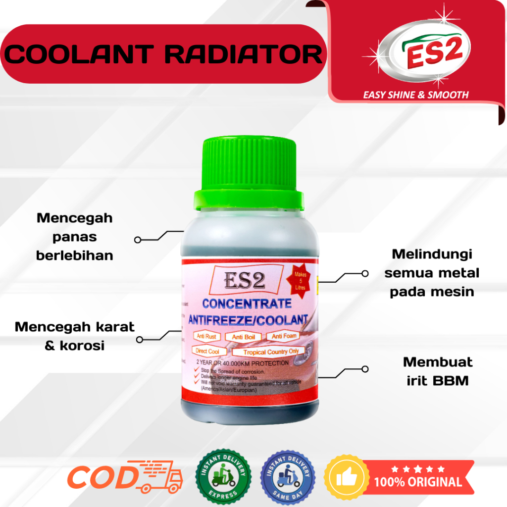 ES2 Coolant Radiator Mobil Motor Biang Air Konsentrat Hijau - Pendingin Mesin Pencegah Karat Korosi – 100 ml