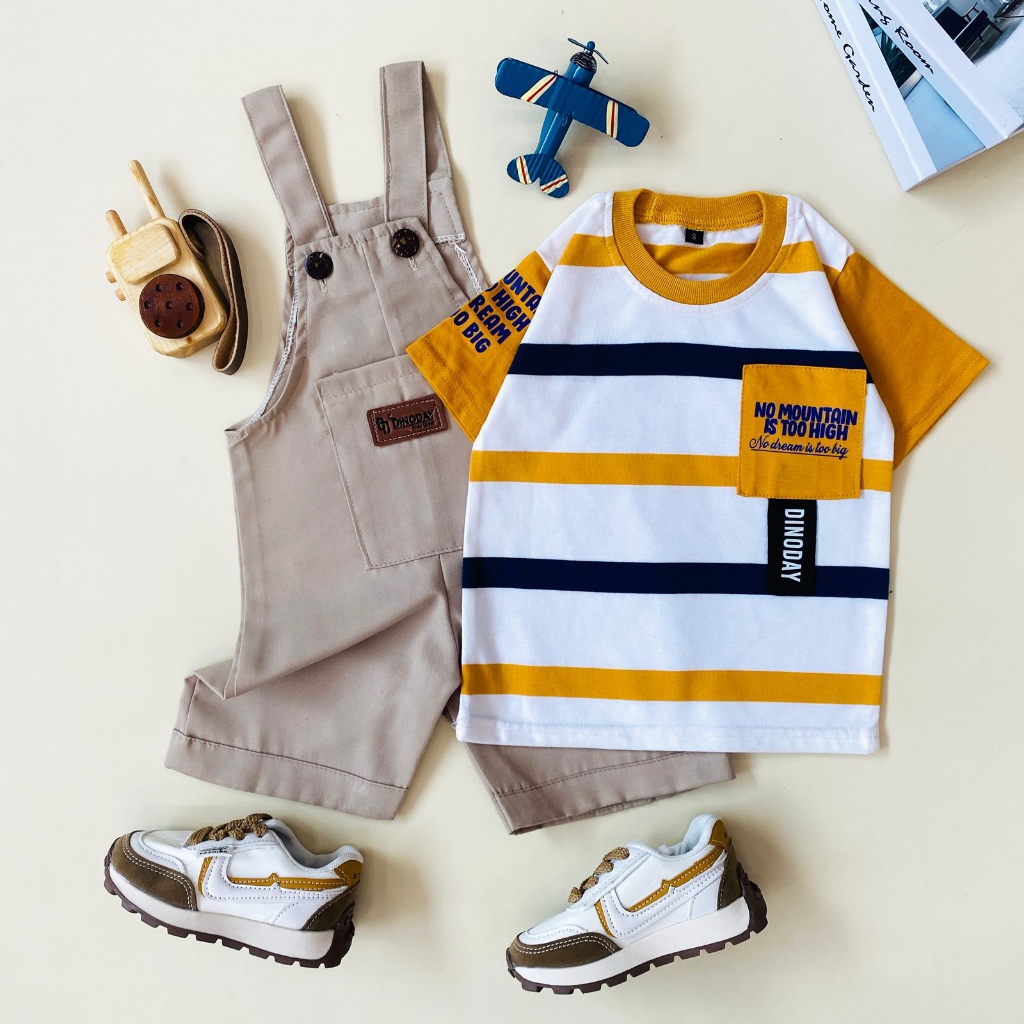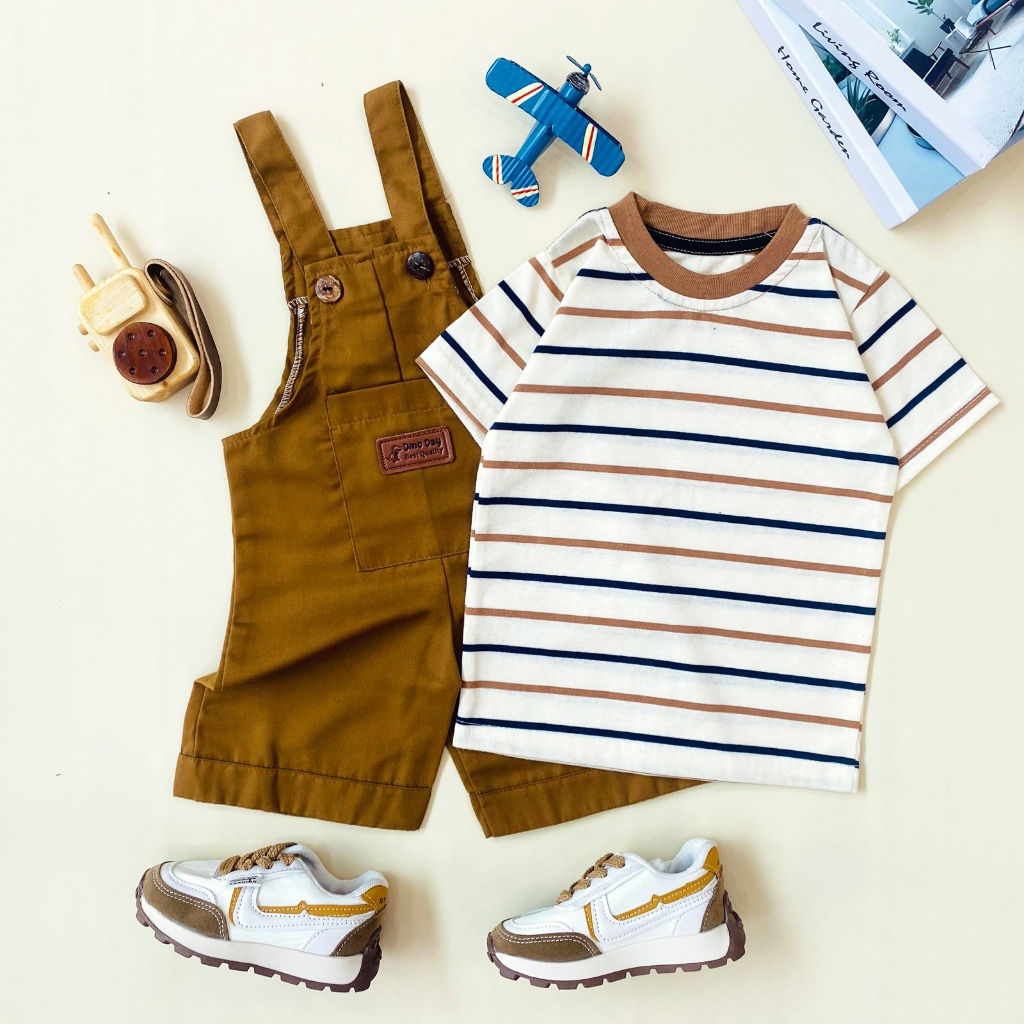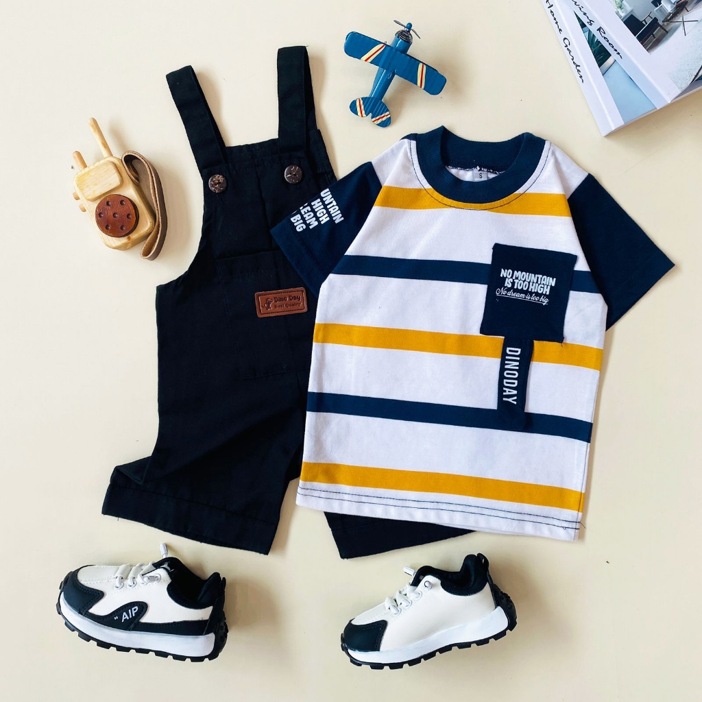 ESTISHOP X DINODAY Setelan Anak Laki Perempuan overall jumpsuit salur stripe baju kodok 1 - 6 tahun