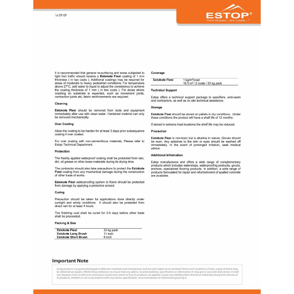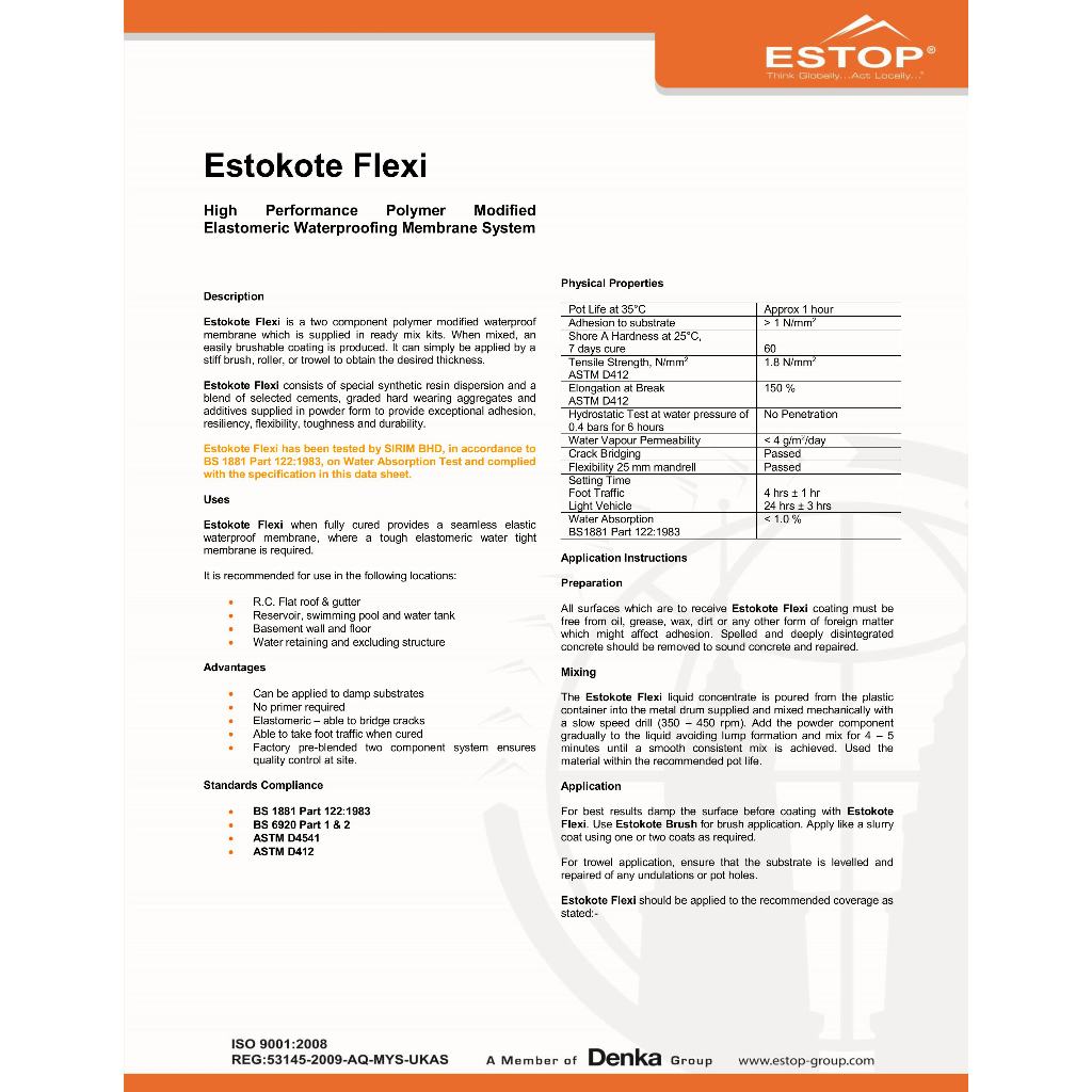 ESTOP | Estokote Flexi | High Performance Polymer Modified Elastomeric Waterproofing Membrane System | ( 30 KG / SET )