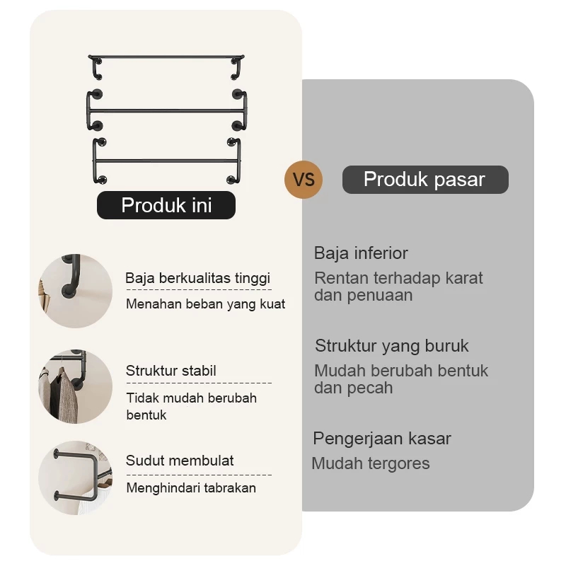 ETCHANDBOLTS Gantungan dindin-Mounted Pakaian Batang-Tabung Hanger gantungan baju dinding-Gantungan Baju Tembok-Multifungsi Kuat dan