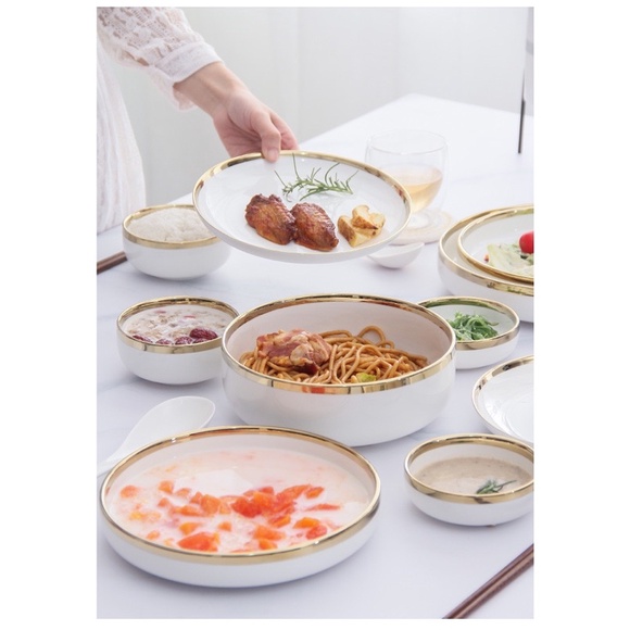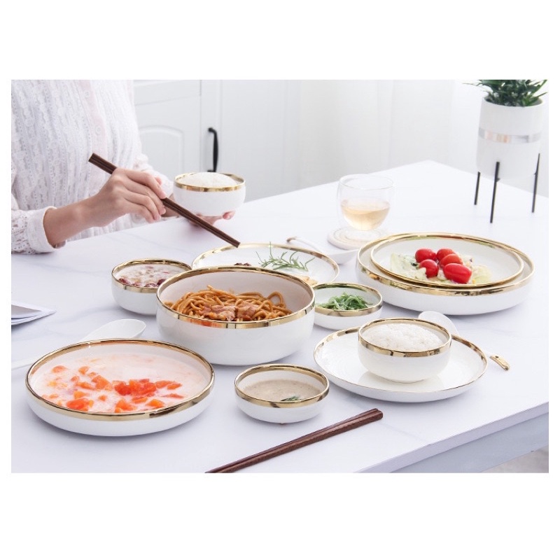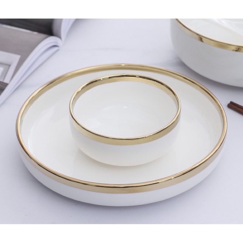 EUROPEAN STYLE GOLD DINNERWARE SET piring marble makan mewah piring makan keramik