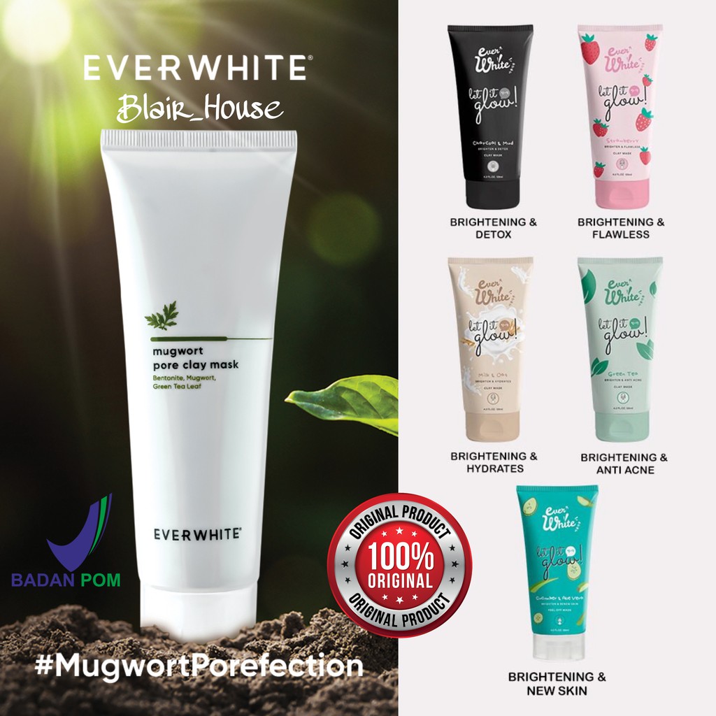 EVERWHITE CLAY MASK/PEEL OFF MASK/MUGWORT MASK/BRIGHTENING MASK/DETOX MASK/MASKER WAJAH/LET IT GLOW