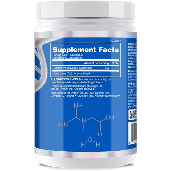 EVOGEN Creatine Monohydrate 60 Serving 300 Gram Suplemen Otot