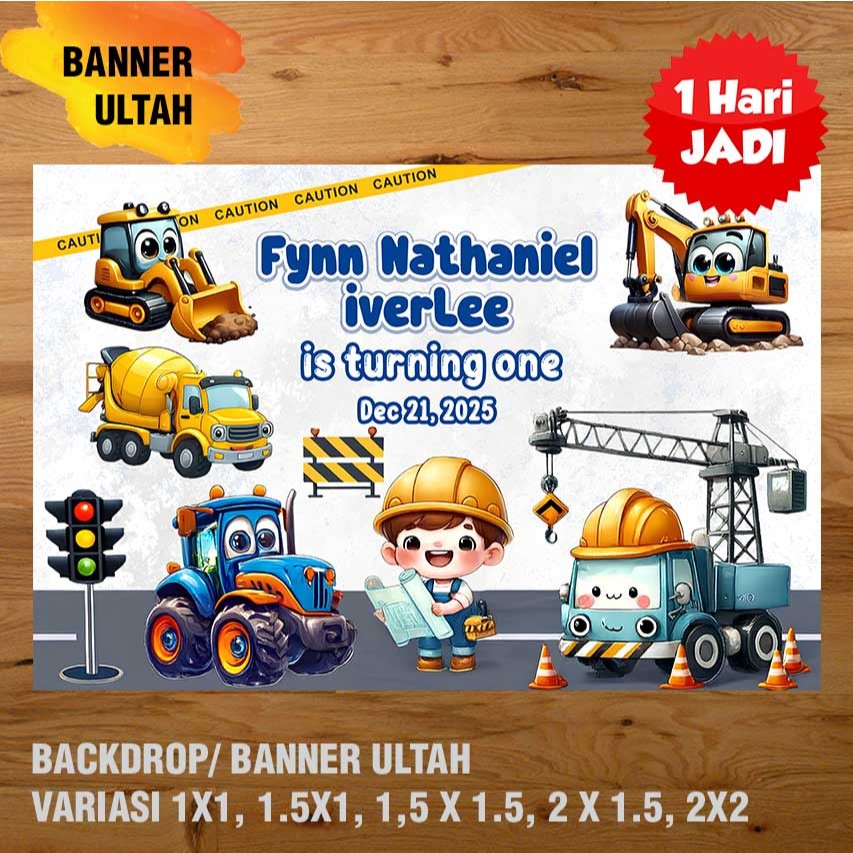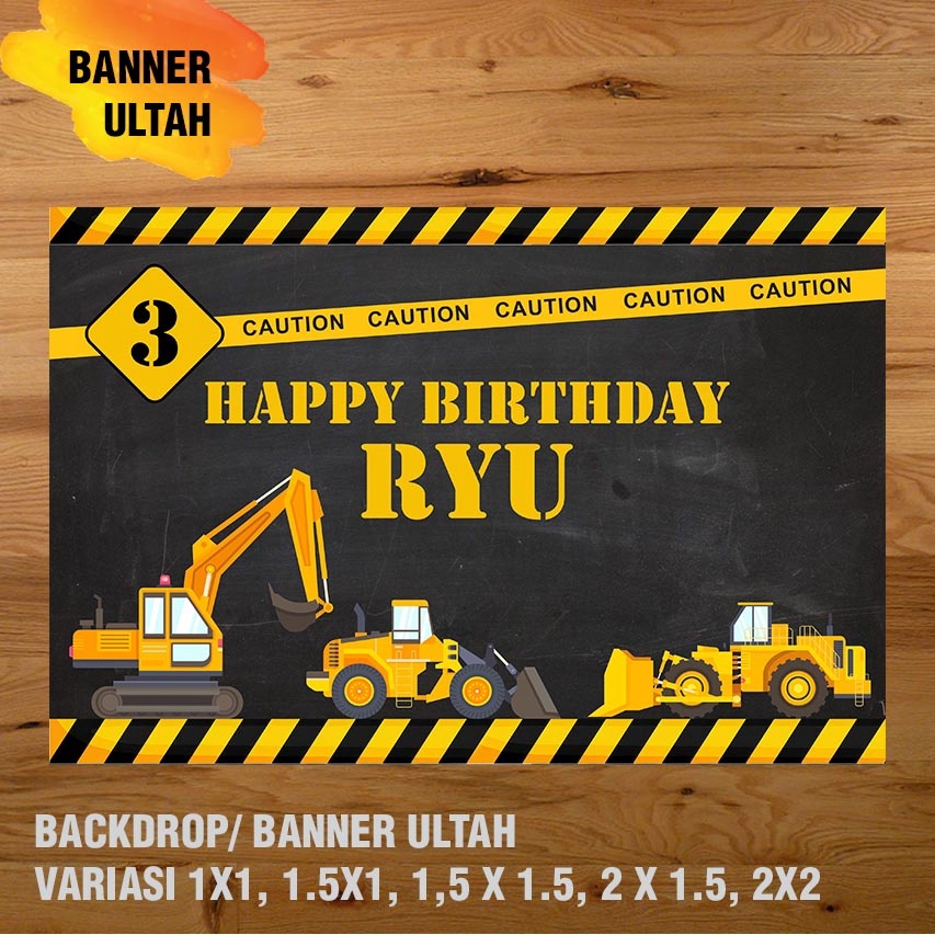 EXCAVATOR, KONSTRUKSI, ALAT BERAT BANNER/ DEKORASI, HAPPY BIRTHDAY, SPANDUK, BANNER ULANG TAHUN/ BACKDROP/ SPANDUK ULANG TAHUN UL-TAH MURAH