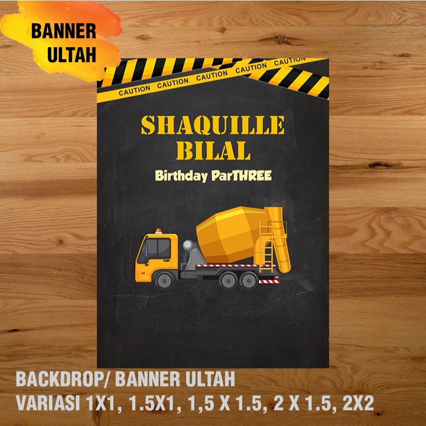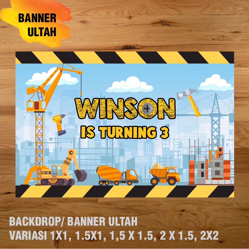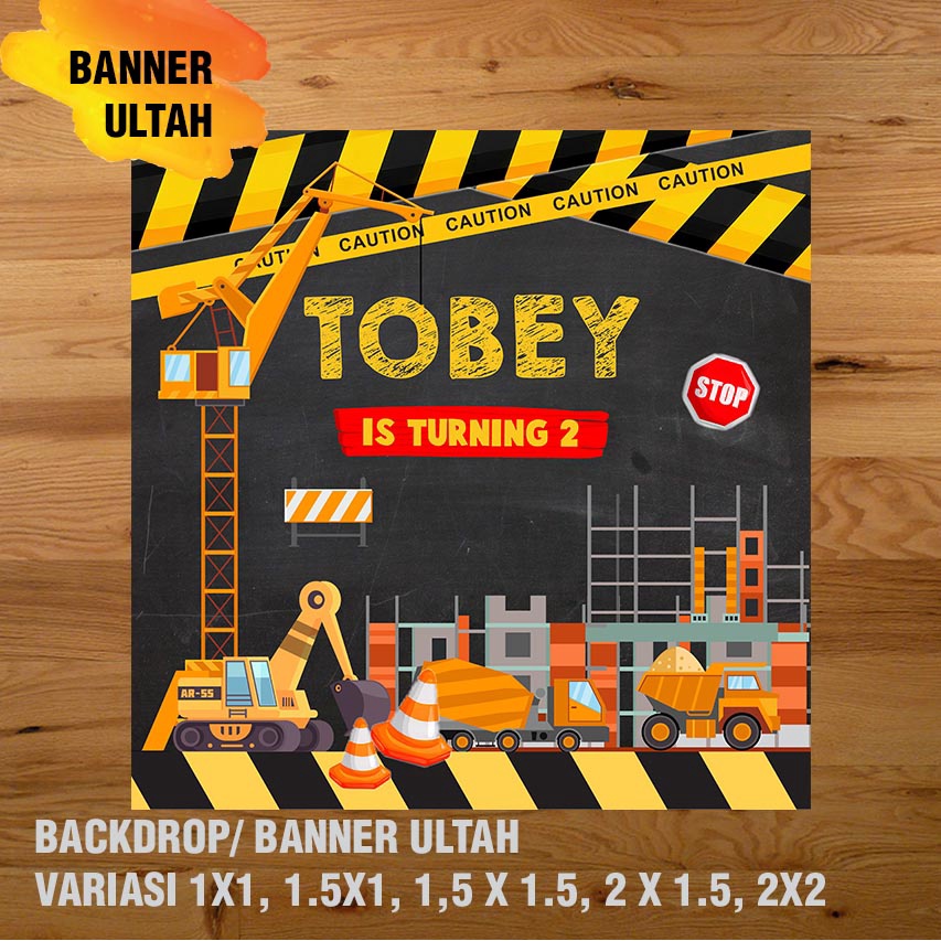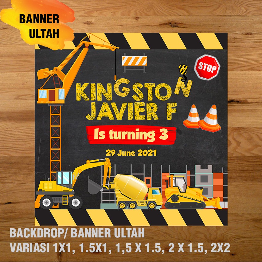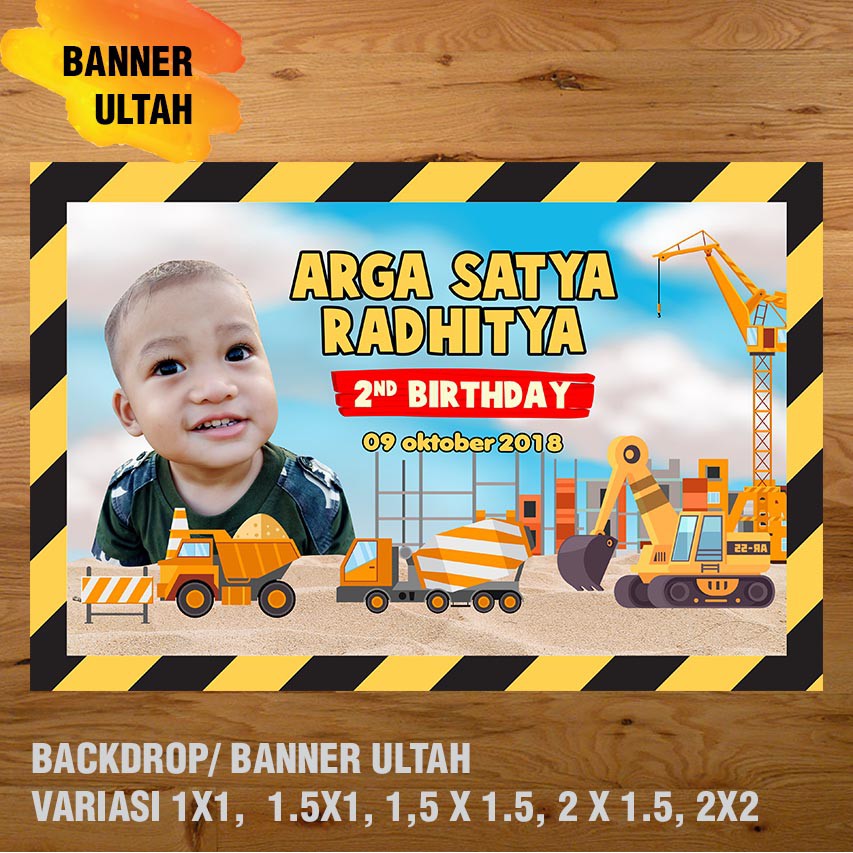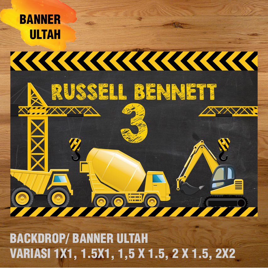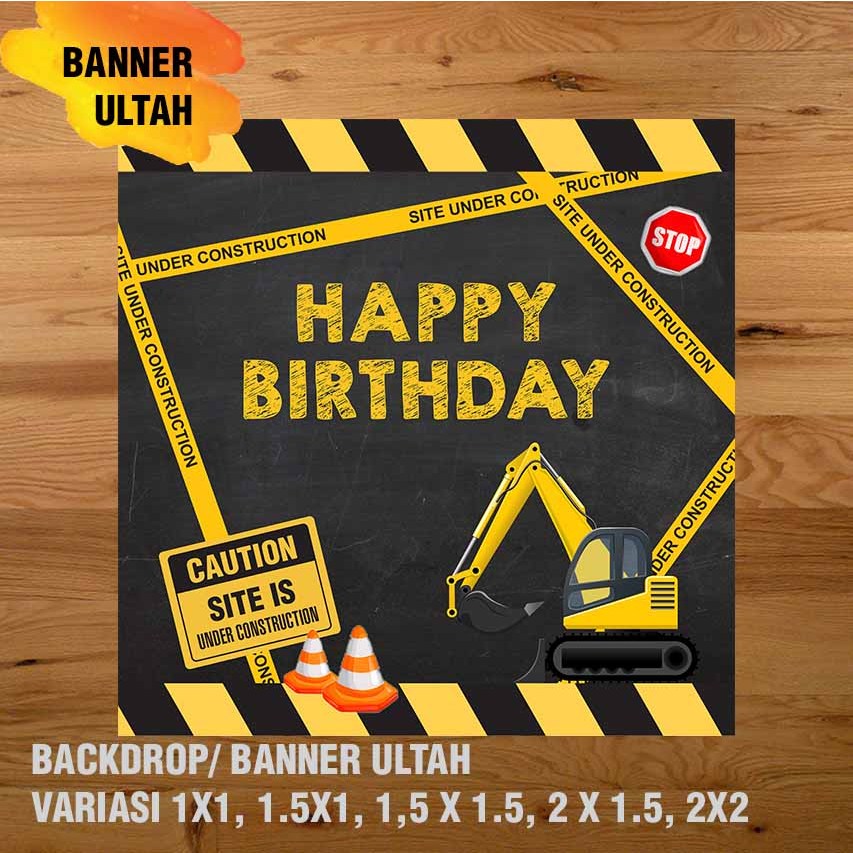 EXCAVATOR, KONSTRUKSI, ALAT BERAT BANNER / DEKORASI, HAPPY BIRTHDAY, SPANDUK, BANNER ULANG TAHUN/ BACKDROP/ SPANDUK ULANG TAHUN UL-TAH