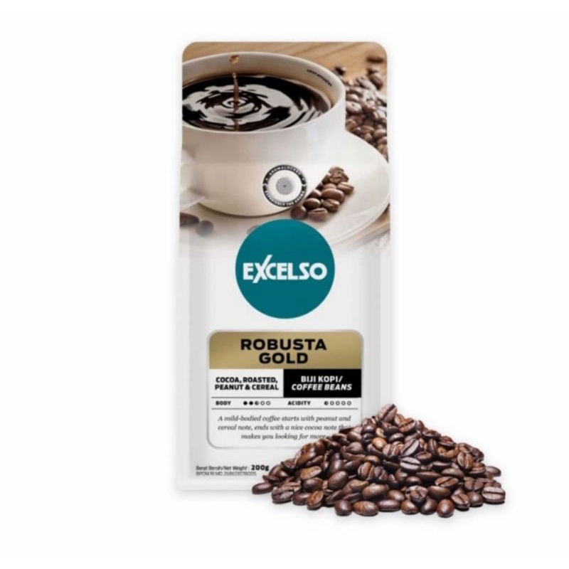 EXCELSO Coffee Robusta Gold Biji Kopi Pilihan Kemasan Praktis 200 gr.