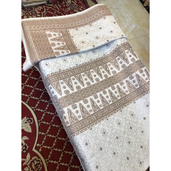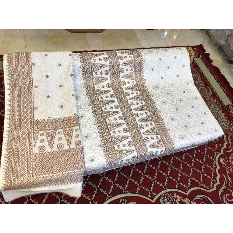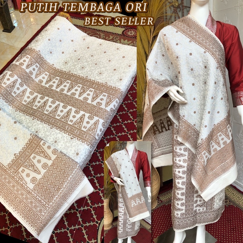 EXCLUSIVE Songket Putih Tembaga Mix ORI /Songket tenun palembang asli Tenun ilham songket/ songket Putih Tembaga mix 2 benang