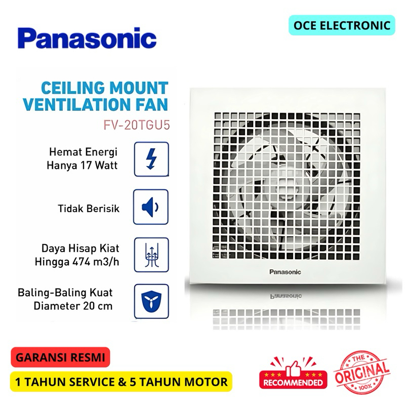 EXHAUST FAN PANASONIC CEILING MOUNT FAN FV-20TGU 8 INCH [GARANSI RESMI]