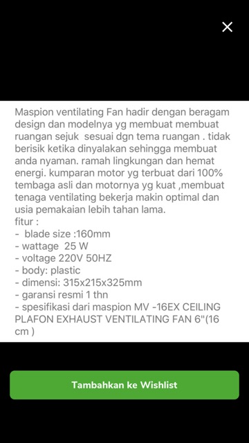 EXHAUST Maspion MV 16 EX Exhaust Ceiling Ventilating Fan 6 inch / Exhaust Fan Plafon MV-16EX / MV16EX / MV 16EX