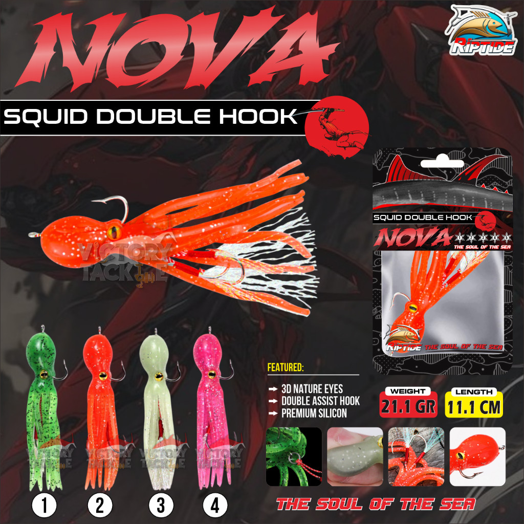 EXTRA BONUS | Riptide Nova Squid Lure 11cm/21gr Double Hook Umpan Casting Trolling Premium | Umpan Pancing Riptide Solpara Umpan Casting Cumi Karet