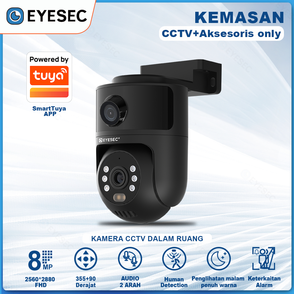 EYESEC CCTV Outdoor WiFi 8MP Dual Lens Waterproof IP Camera 360° PTZ Kamera HP Jarak Jauh Garansi 1 Tahun