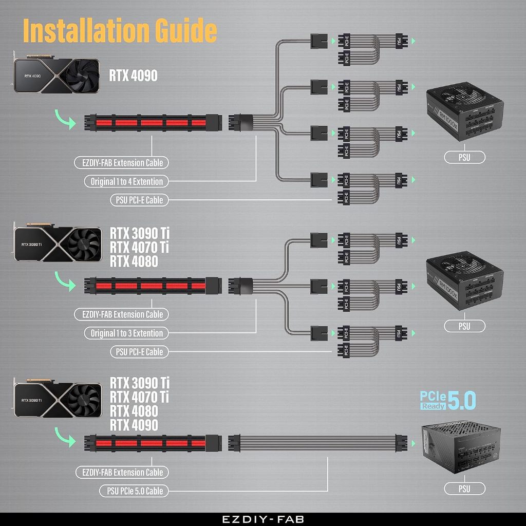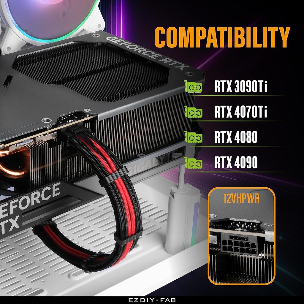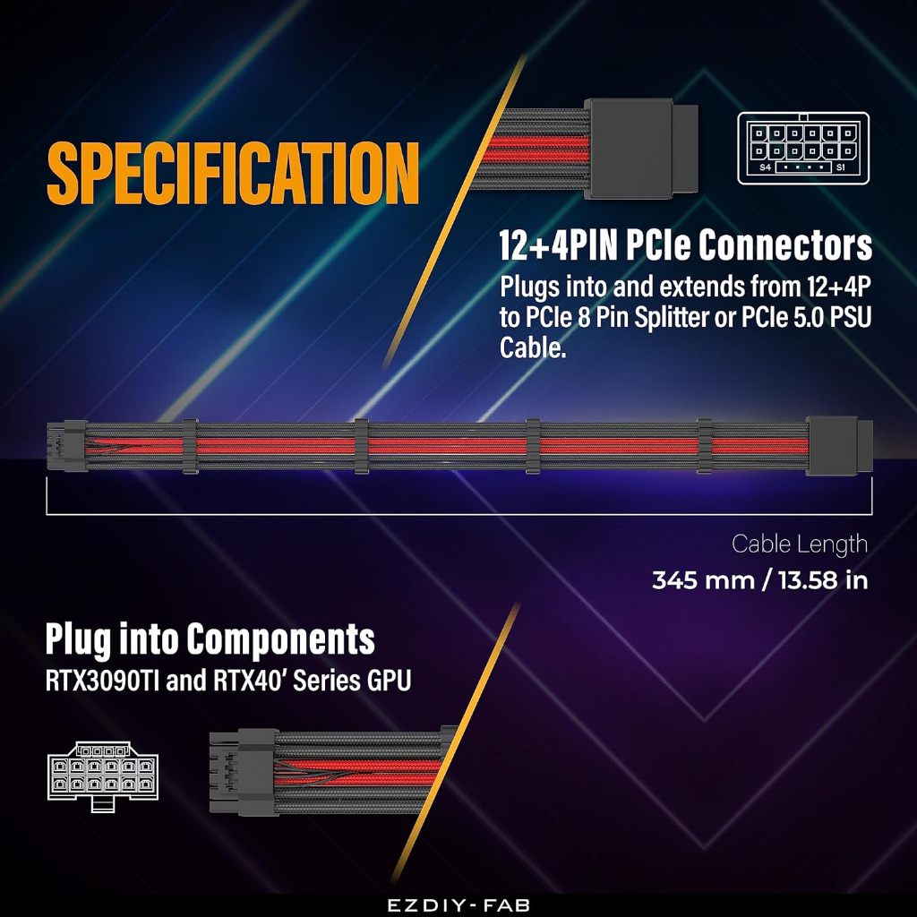 EZDIY-FAB 16 AWG BLACK RED 12VHPWR MALE TO FEMALE GPU EXTENSION SLEEVED CABLE