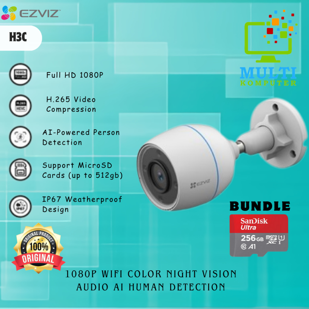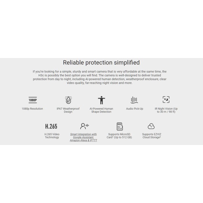 EZVIZ H3C COLOR 1080P WIFI COLOR NIGHT VISION AUDIO AI HUMAN DETECTION