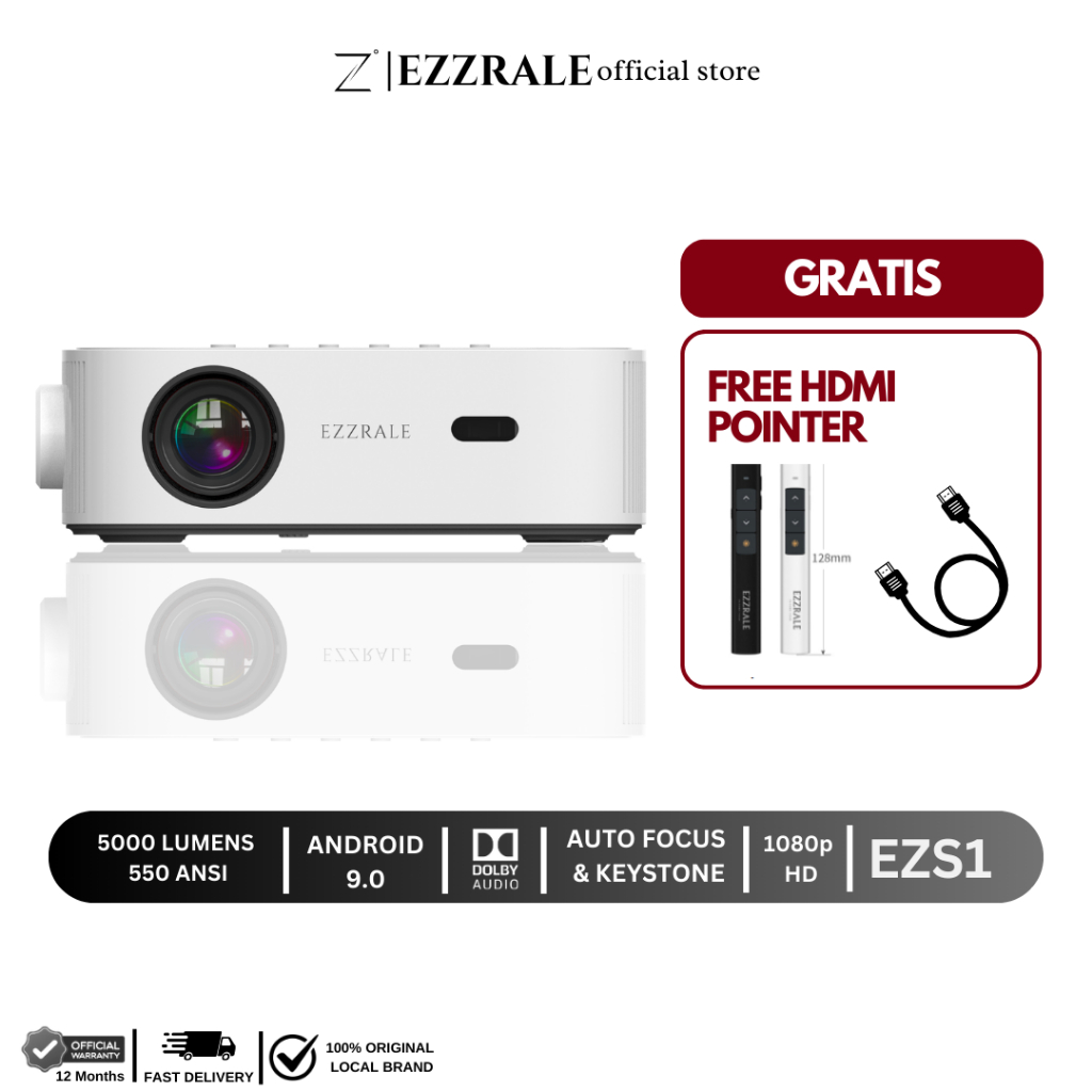 EZZRALE EZS1 550 ANSI FHD 1080p Smart Android Projector 9.0 , Digital Focus, Dolby Sound Effect
