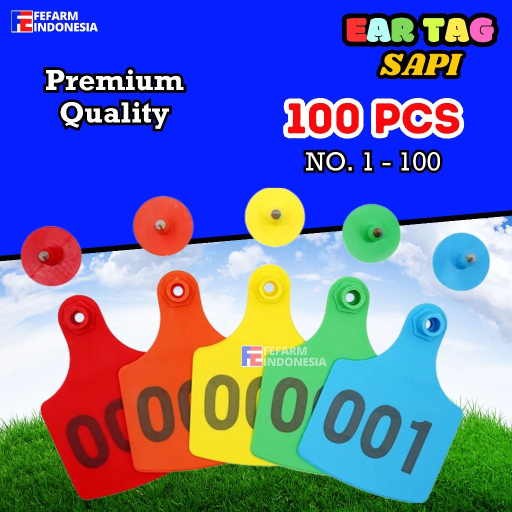 Ear Tag 4x5 cm Nomer Per100 Eartag Ternak Hewan Kambing Sapi Domba Babi Kuda Kerbau DLL Bisa jadi Kalung Penanda Hewan FEFARM