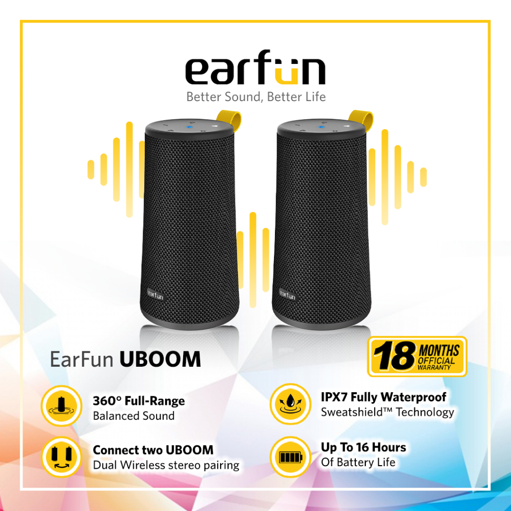 EarFun UBOOM - Portable Bluetooth Speaker with IPX7 & Spatial 360 Audio