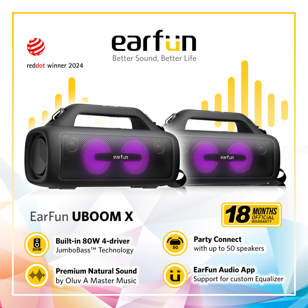 EarFun UBOOM X - Lightweight JumboBass Portable Bluetooth Speaker for Outdoor Listening