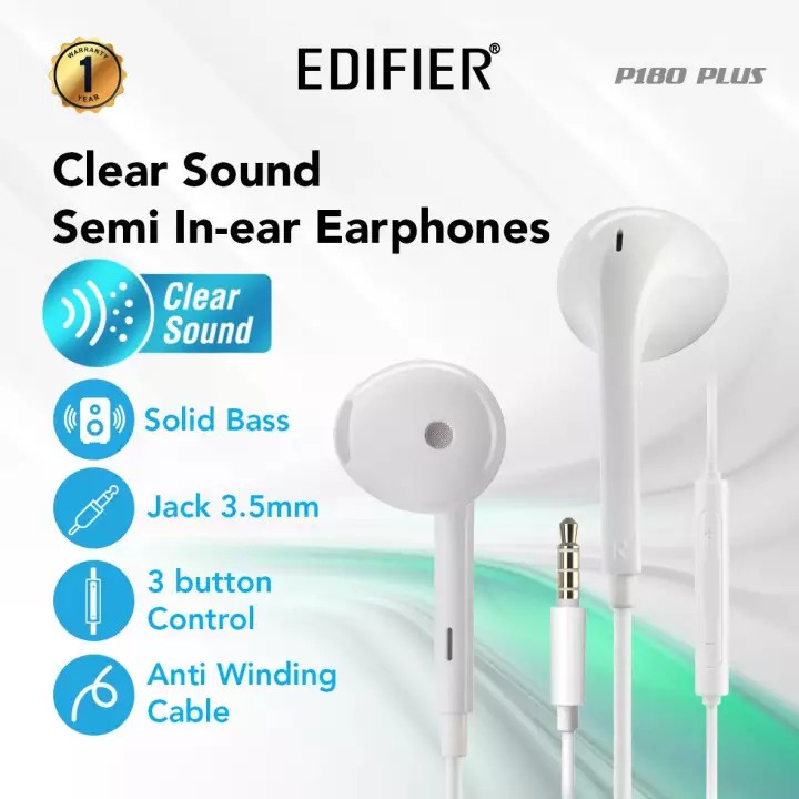 Earphone Edifier P180 Plus White-Earbuds with Remote and Mic