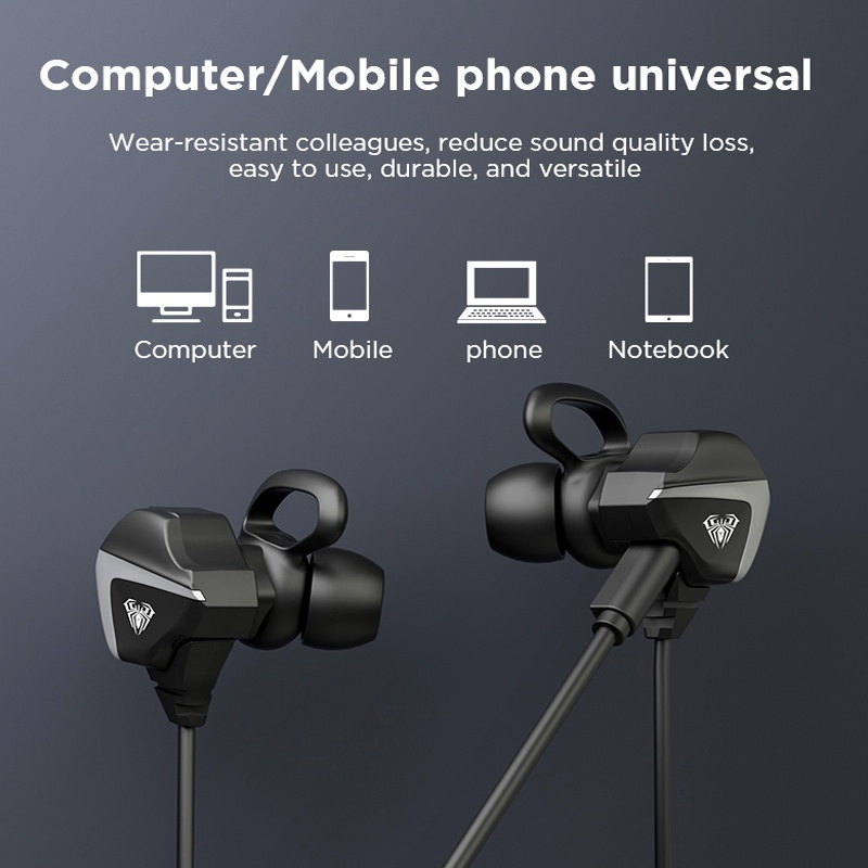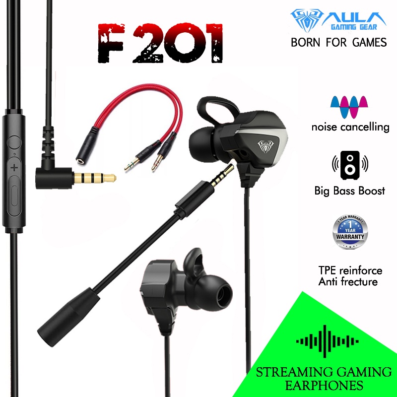 Earphone Gaming AULA F201 - PC/MOBILE Dengan Spliter Jack - Elegant Desain - Gaming Earphone - Kompatibel All Handphone dan Komputer/Laptop