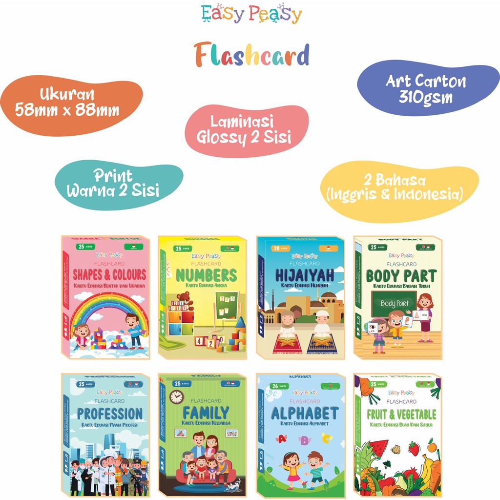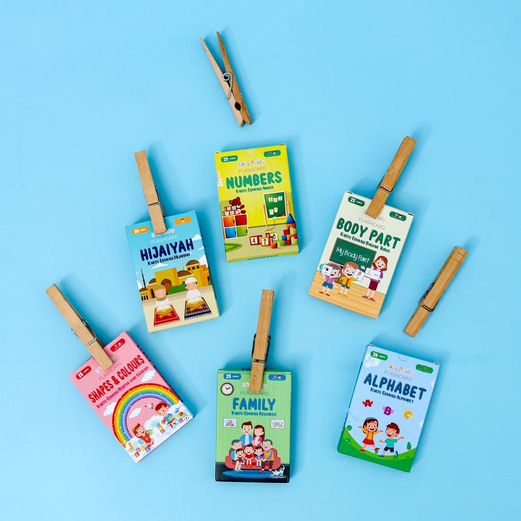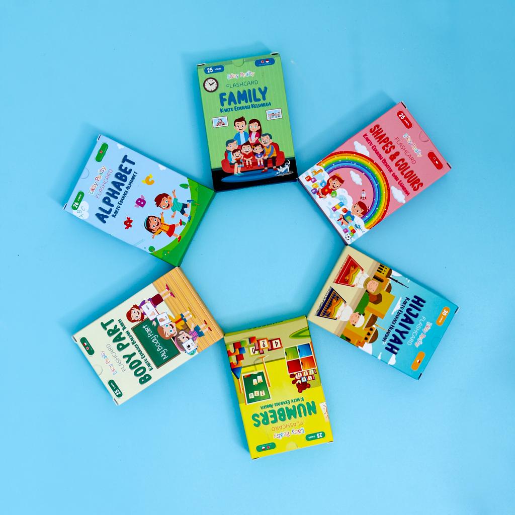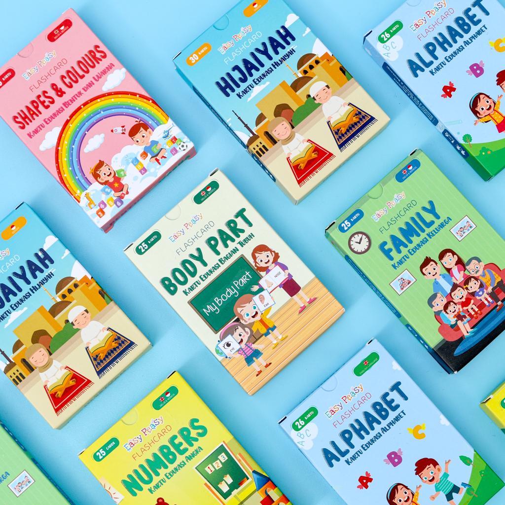 Easy Peasy - Flash card - Kartu Edukasi - Mainan Kartu Belajar Huruf Abjad Angka Anak Balita TK PAUD - Flashcard Mainan Edukasi Anak Usia Dini Cowok Cewek