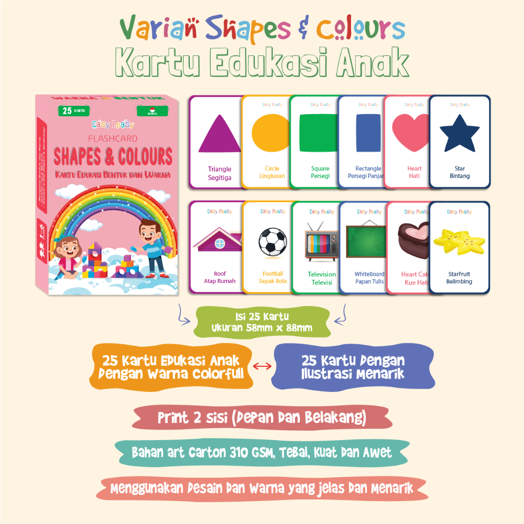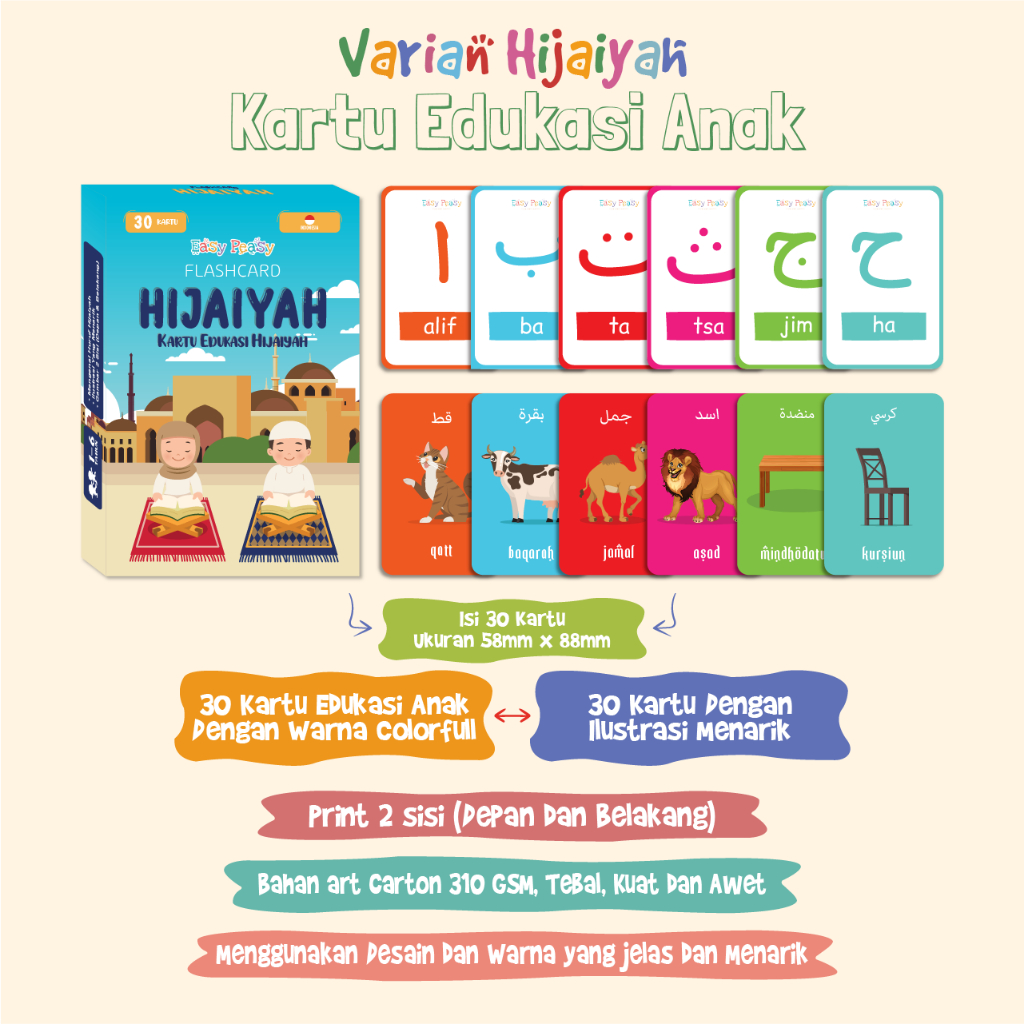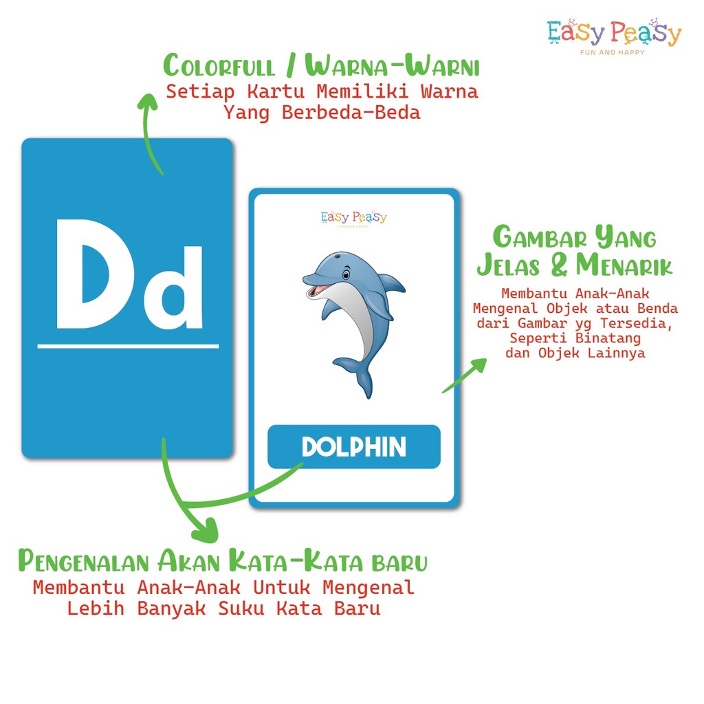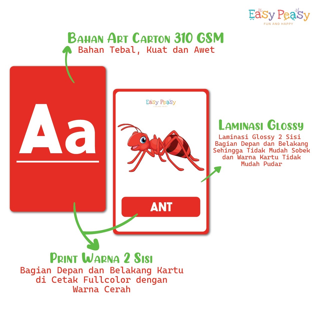 Easy Peasy - Flash card - Kartu Edukasi - Mainan Kartu Belajar Huruf Abjad Angka Anak Balita TK PAUD - Flashcard Mainan Edukasi Anak Usia Dini Cowok Cewek