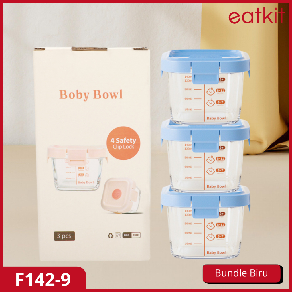 Eatkit Baby Food Container Glass 170ml Wadah Mpasi Kaca BPA Free Penyimpanan Mangkok Kotak Bayi