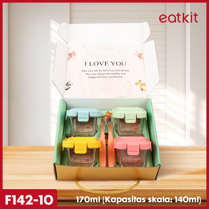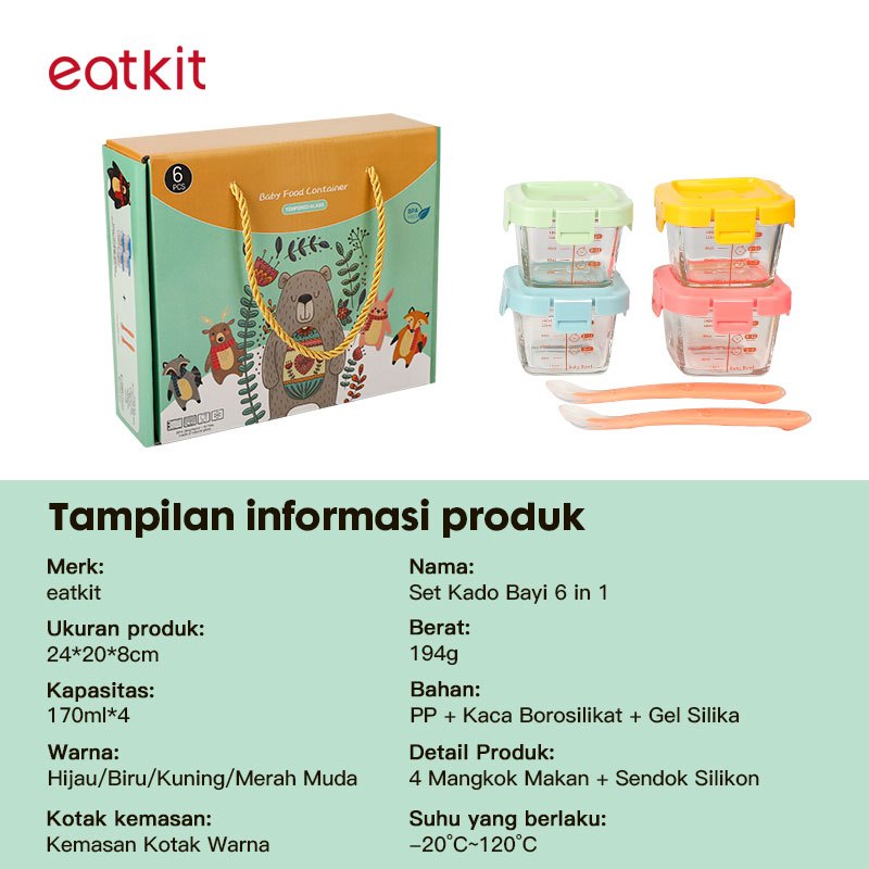 Eatkit Hampers Mpasi Kaca 6in1 Tempat Makan Bayi + Sendok Silicon Baby Gift Food Container BPA FREE