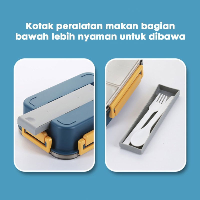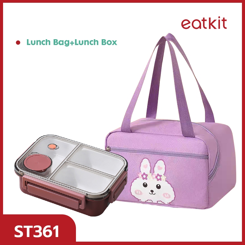 Eatkit Lunc Box Bento 800ml Microwavable Kotak Makan 3 Sekat Free Sendok Garpu Saus Cup Anti Tumpah
