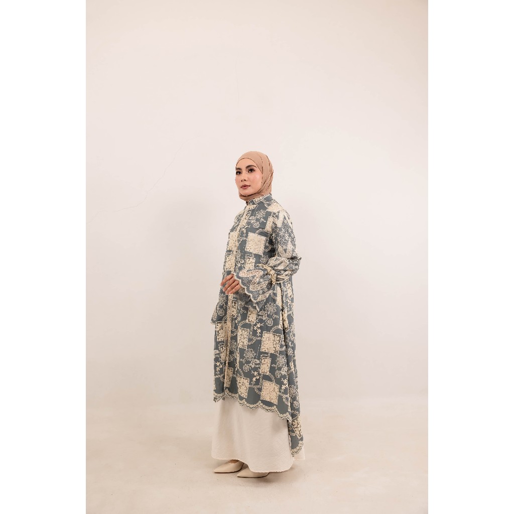Edness - Cayla Denim 08| Setelan Tunik Katun Bordir Wanita Premium + FREE HIJAB