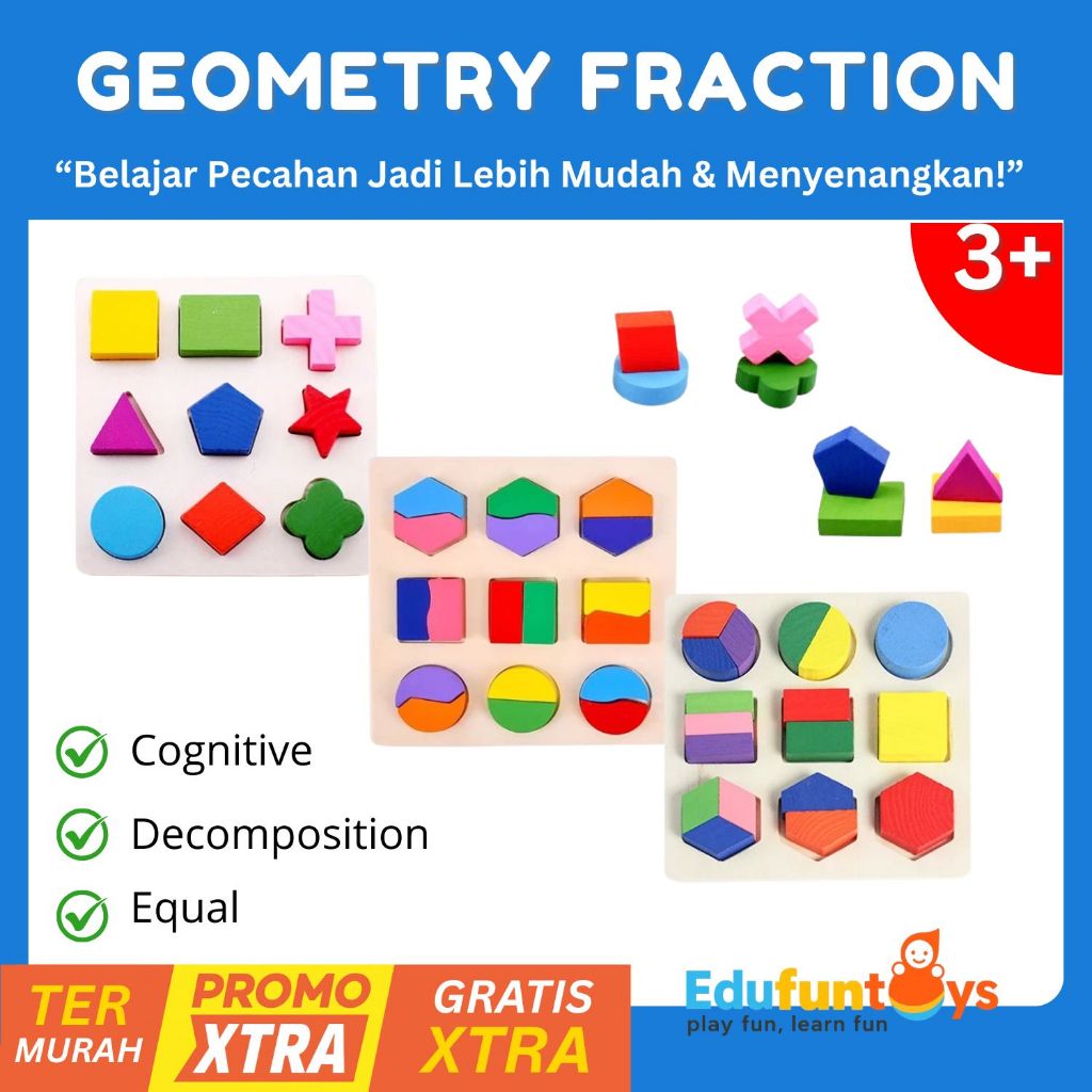 [Edufuntoys] Big Geometry Fraction Board – Puzzle Pecahan & Bentuk Geometri Anak