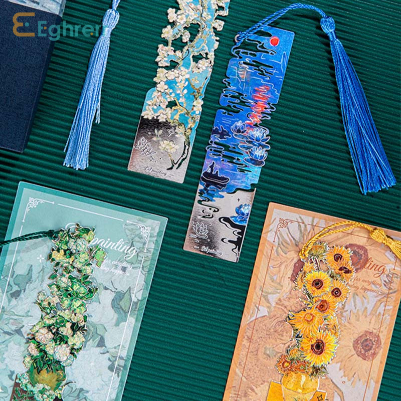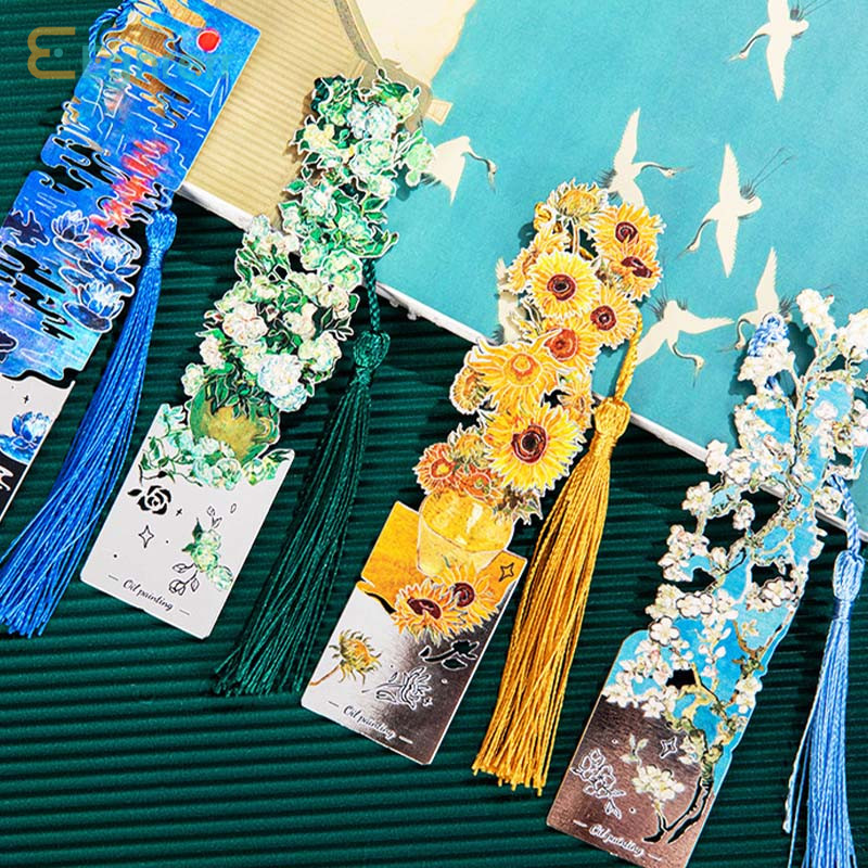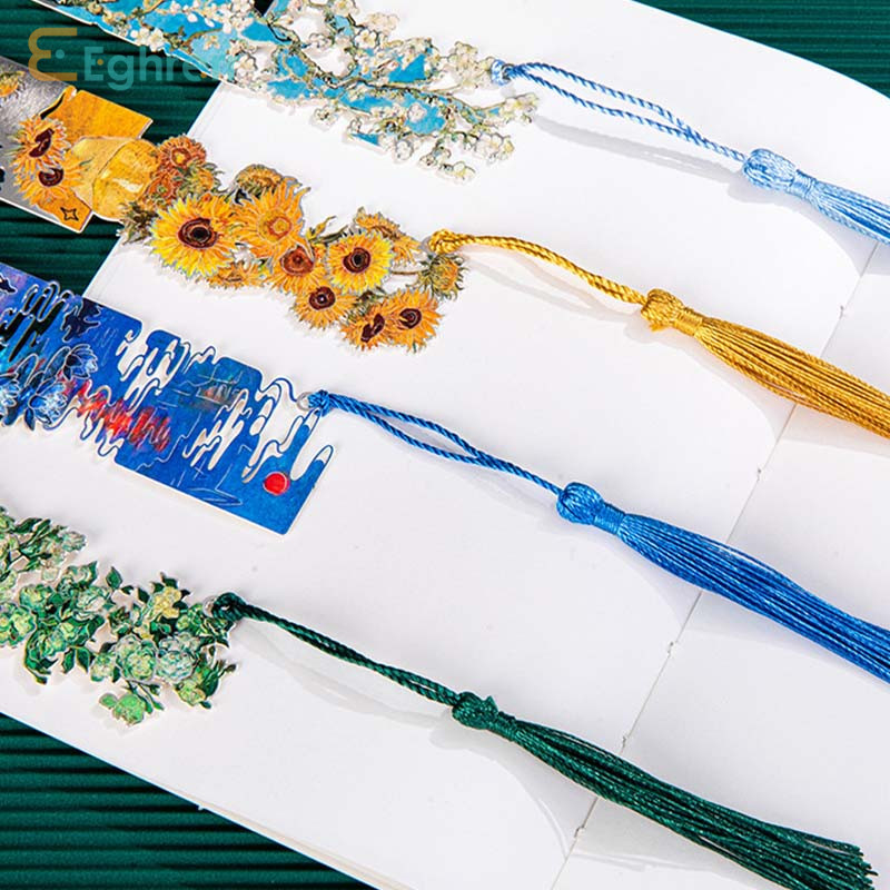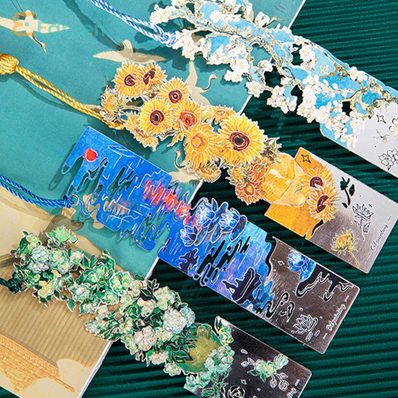 Eeghrerr Metal Oil Painting Bookmark Van Gogh Famous Painting Book Clip Bookmark Hollow-out