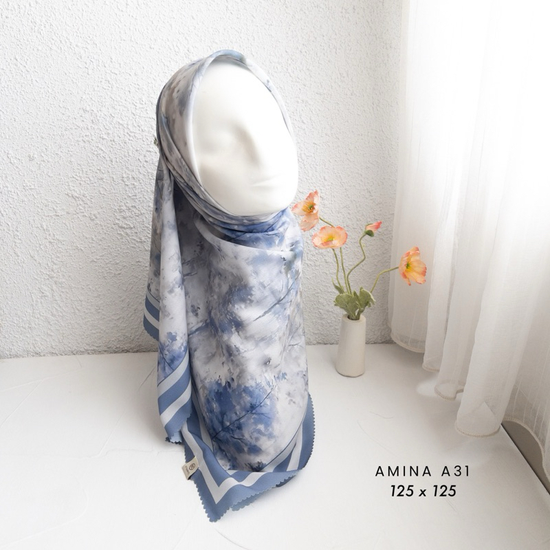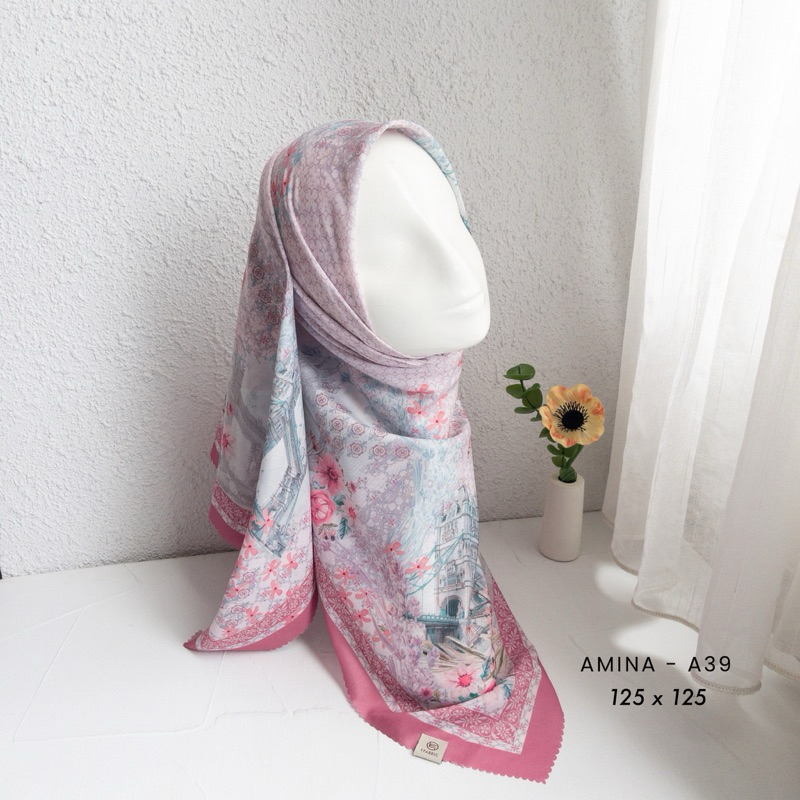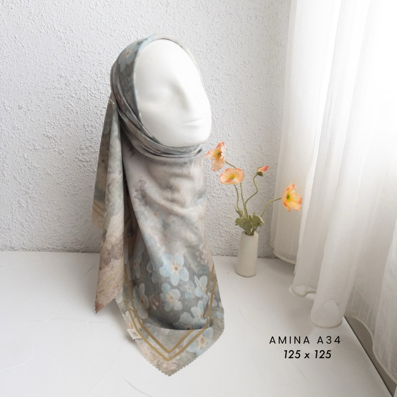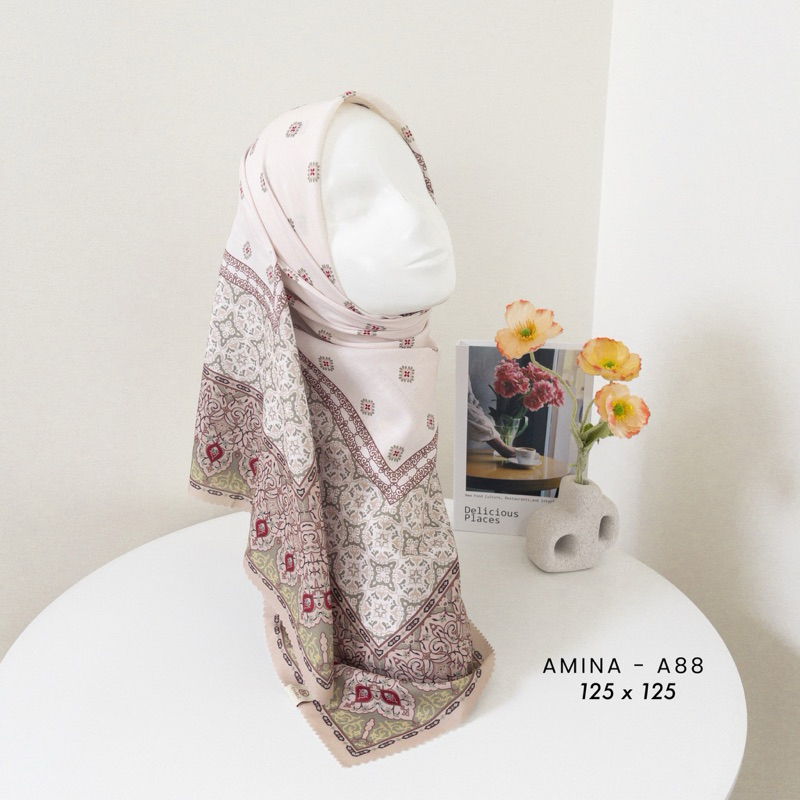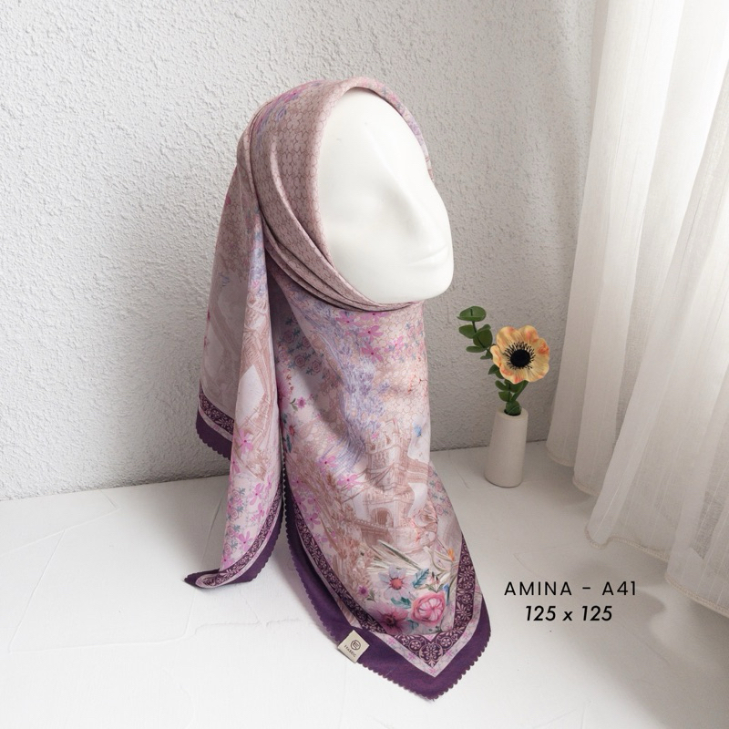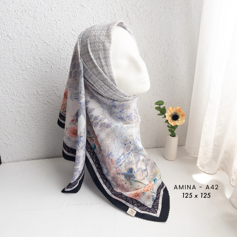 Efabric - Hijab Amina Segi Empat JUMBO SYAR'I 125 x 125 / Kerudung Segi Empat Motif / Hijab Segi Empat Voal Motif lasercut / Hijab Segi Empat Motip Syar'i
