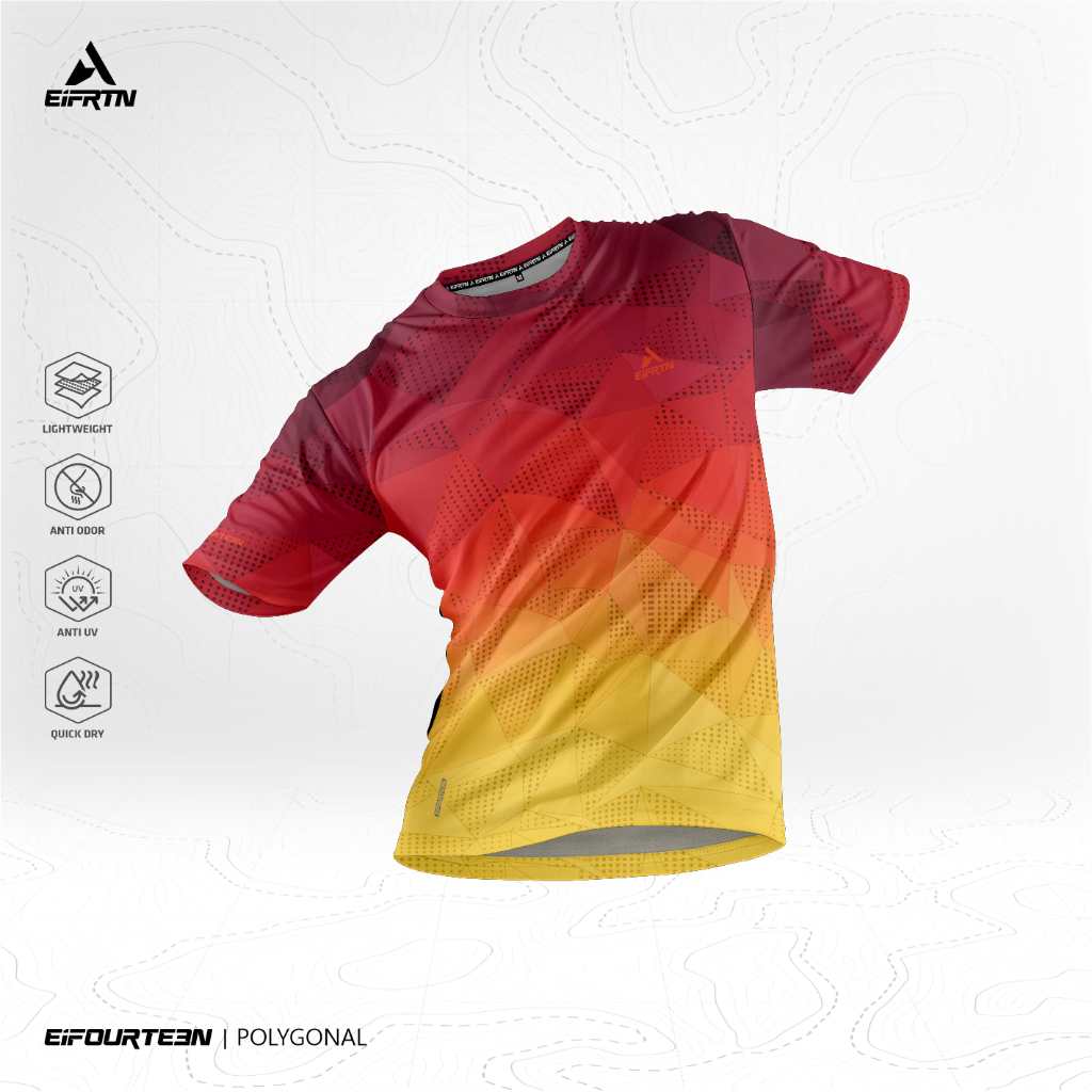 Eifrtn Baju Kaos Jersey Olahraga Sport Lengan Pendek Warna Merah Running Lari Sepeda Gym Sport Padel Bulutangkis Badminton Eifourteen | Polygonal