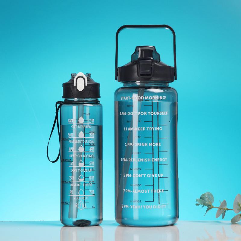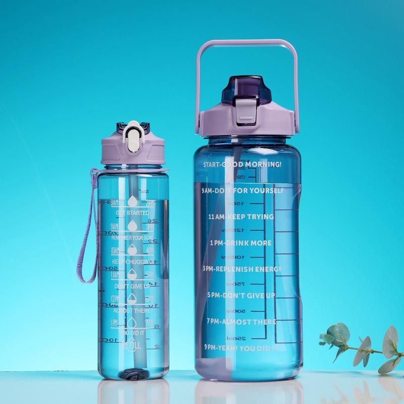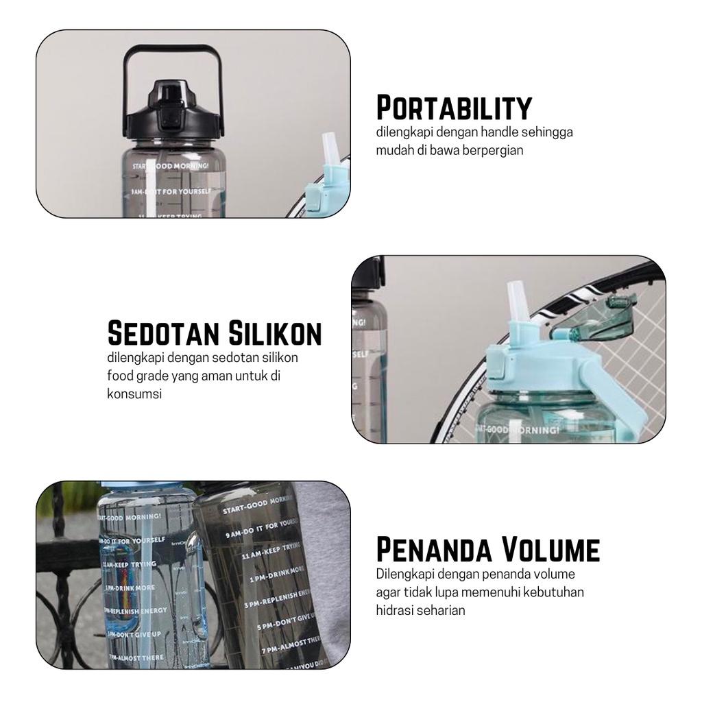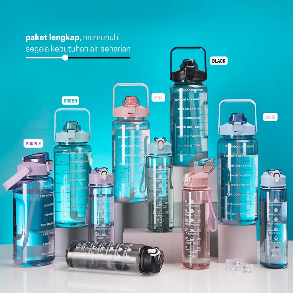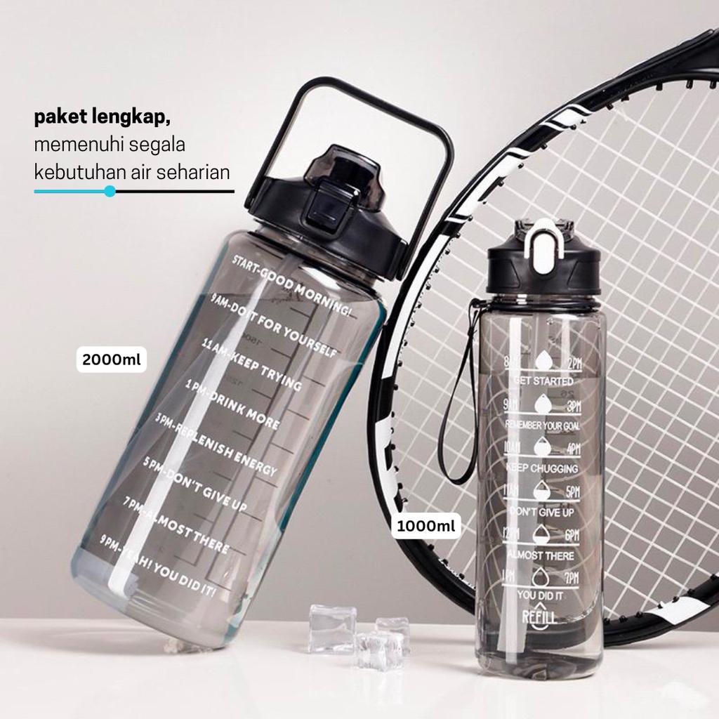 Either.id - Botol Minum Motivasi Set 2 in 1 Botol Air 2 Liter + 1 Liter Botol Anak Sekolah Premium BPA FREE