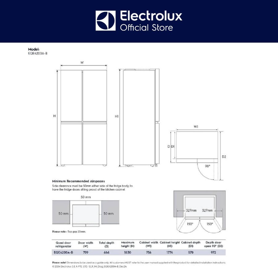 Electrolux Kulkas Multidoor 4 Pintu EQE4200A-B 457L TasteLock - Cooling 360° - Laci Sayur Luas - Teknologi Inverter - QuickFreeze - QuickChill Warna Hitam Matte Garansi 1 Tahun 10 Tahun Kompresor / EQE 4200 A-B / EQE4200 A-B
