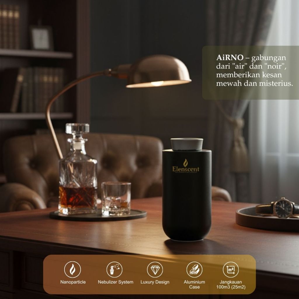 Elenscent Scent Diffuser Pro Premium Waterless Pengharum Ruang Mobil USB C Recharge Metal Solid