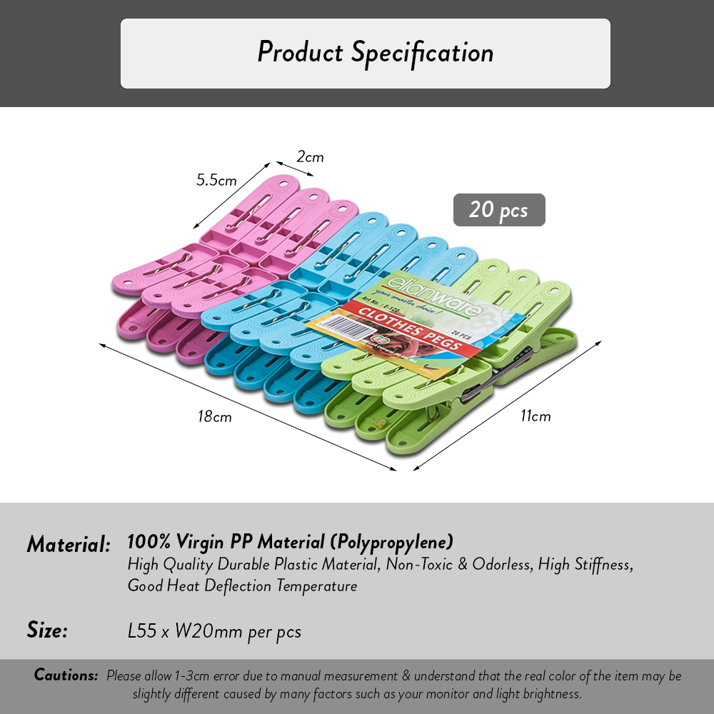 Elianware Multicolor Clothes Pegs Penjepit Jemur Baju (20 Pcs) E-120