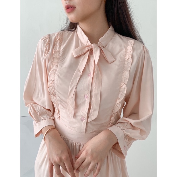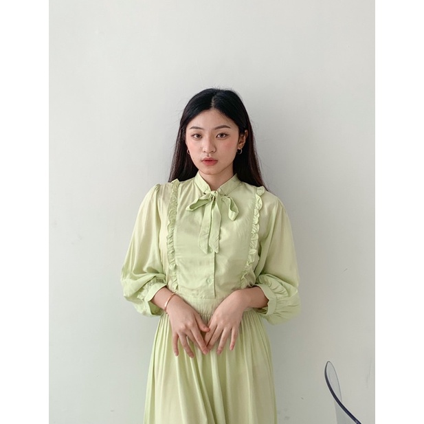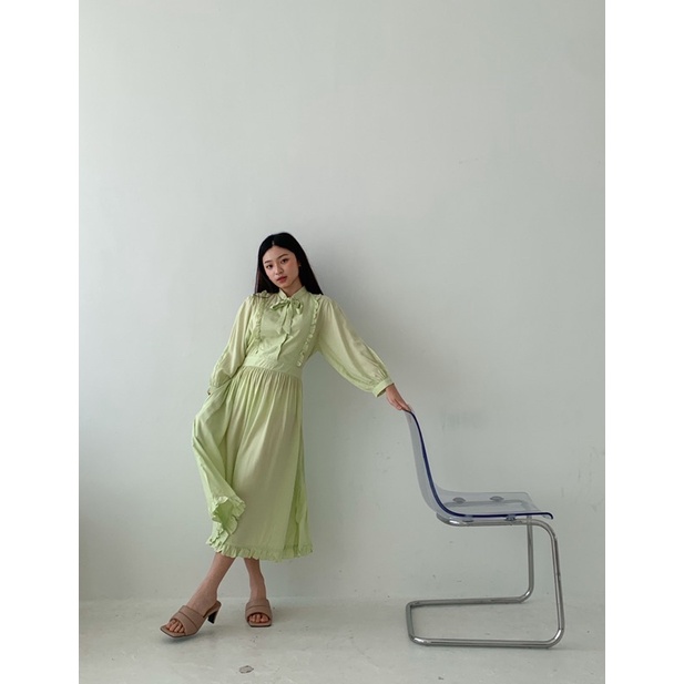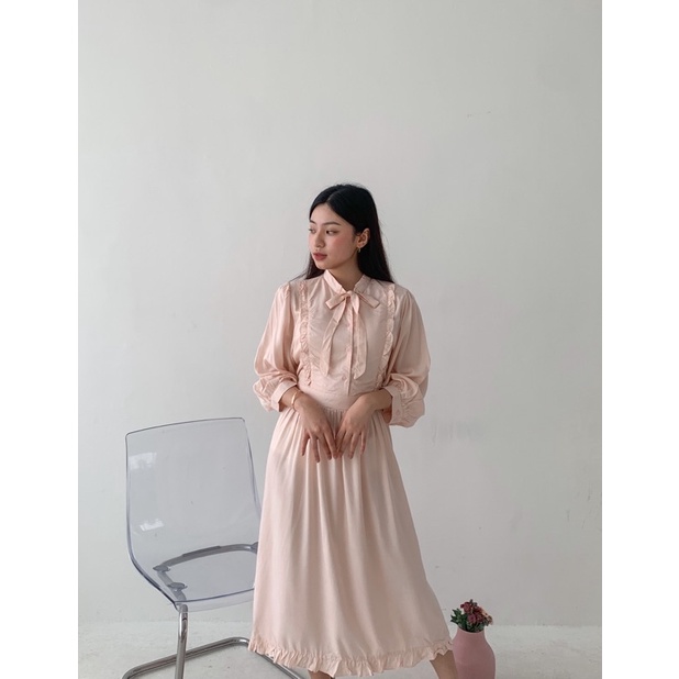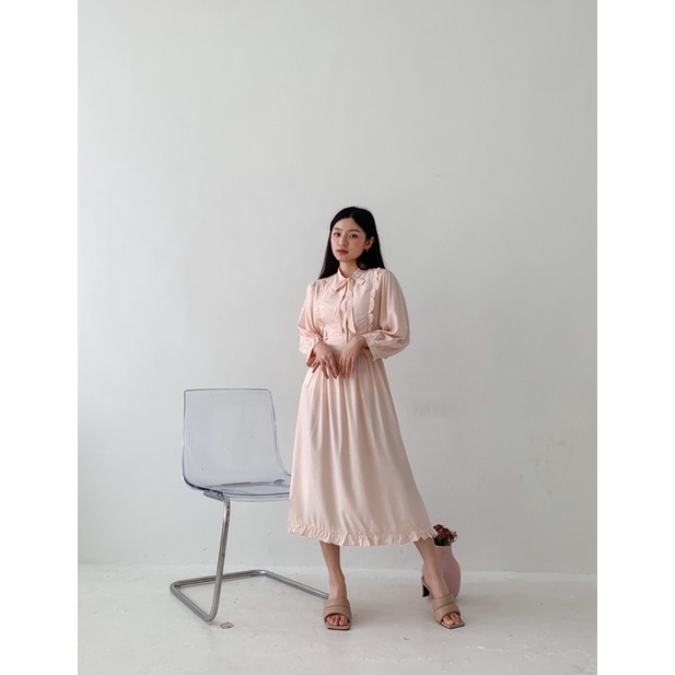 Elise dress - dres midi polos ruffle wanita perempuan cewe cewek korea kekinian