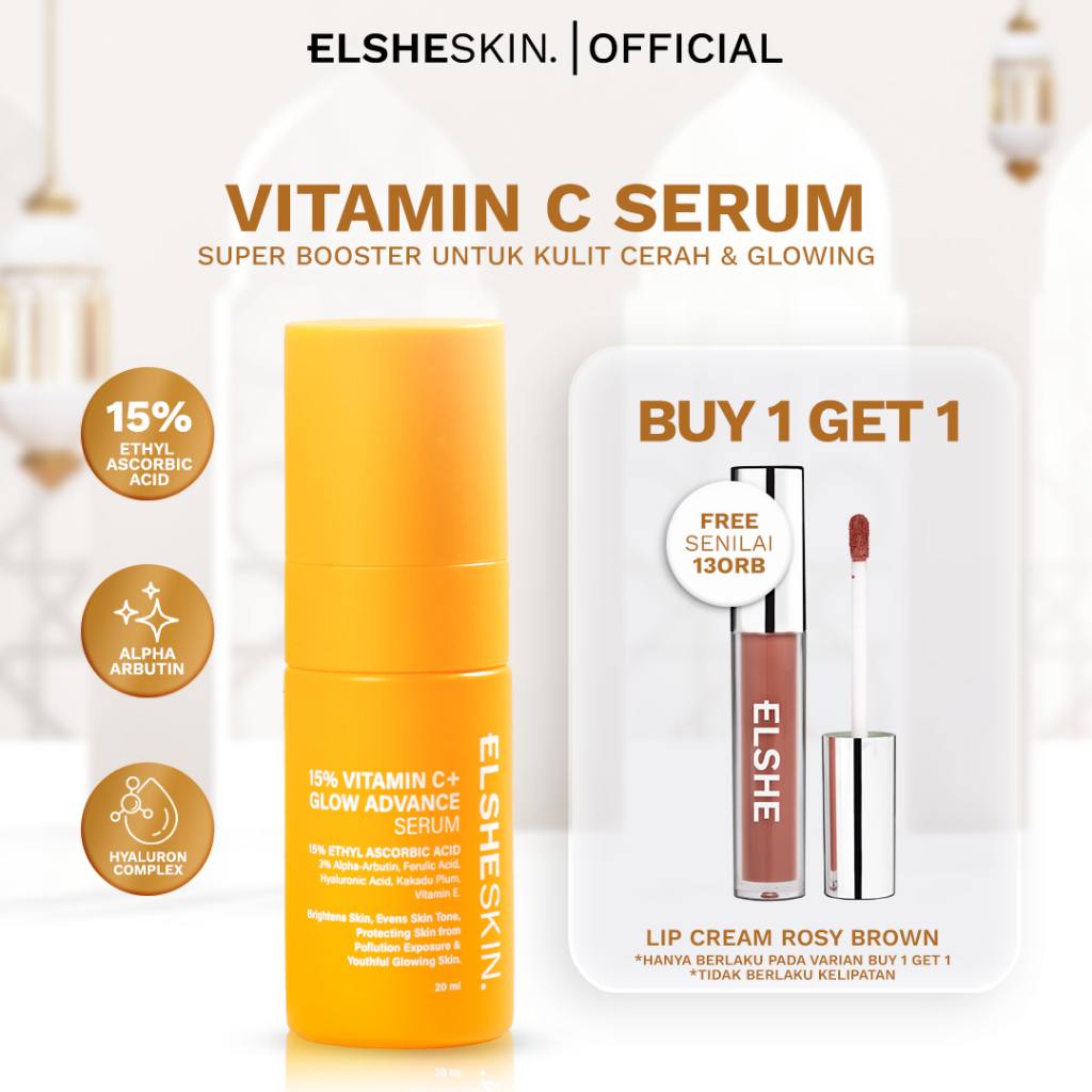 Elsheskin 15% Vitamin C+ Glow Advance Serum 20ml - Brightening Skincare, Serum Wajah Tampak Lebih Cerah dan Glowing, Mencerahkan Kulit Kusam, Memudarkan Dark Spots, Melindungi Kulit dari Polusi, Membantu Mencegah Penuaan Dini