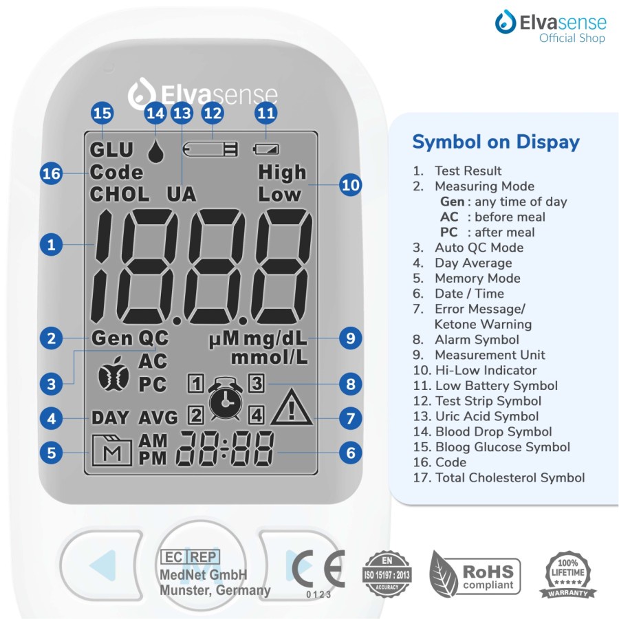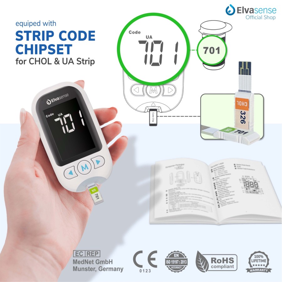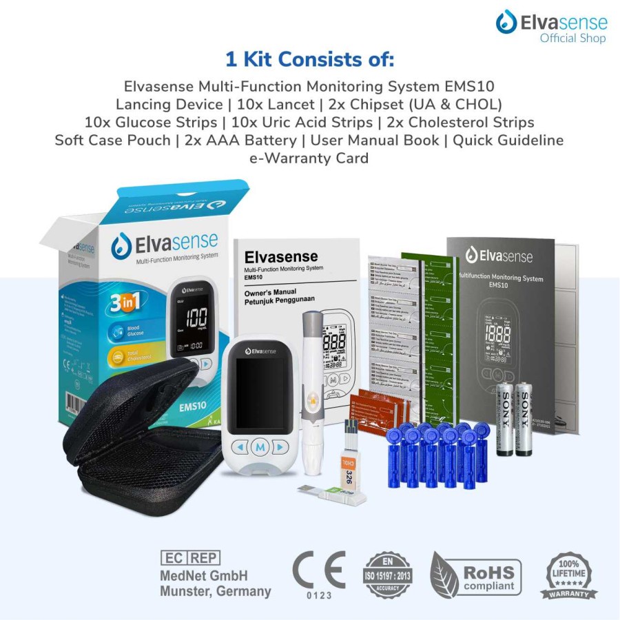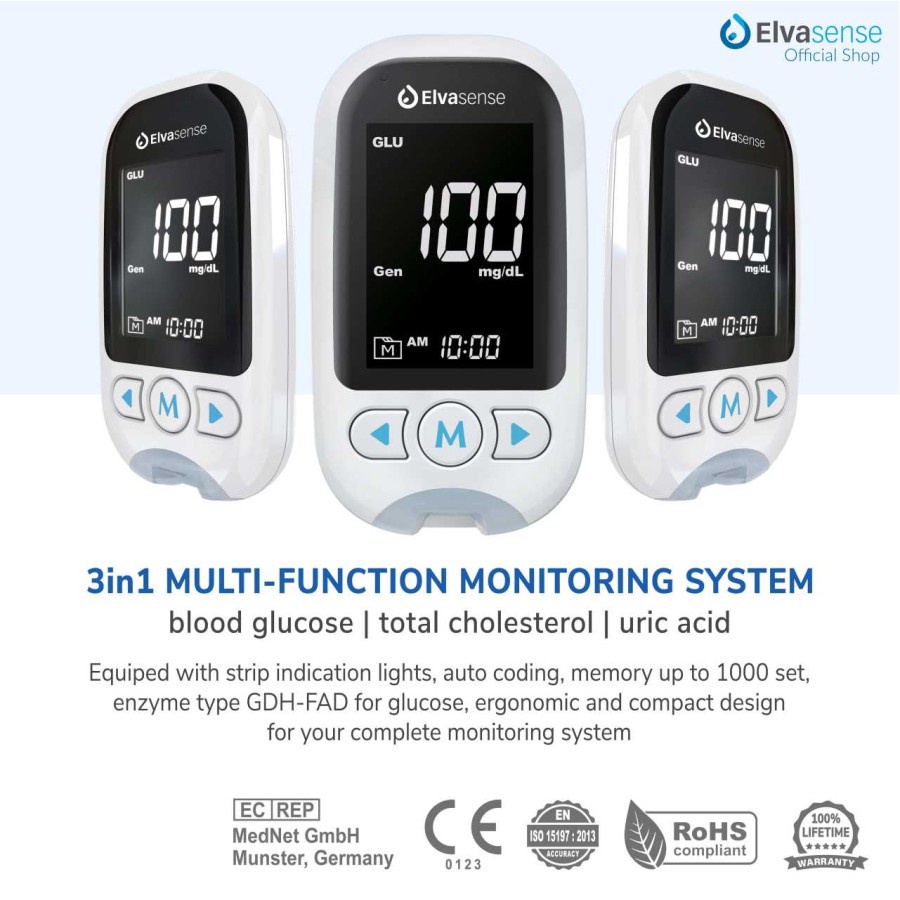Elvasense Alat GCU 3in1 Alat Tes Gula Darah Kolesterol Asam Urat