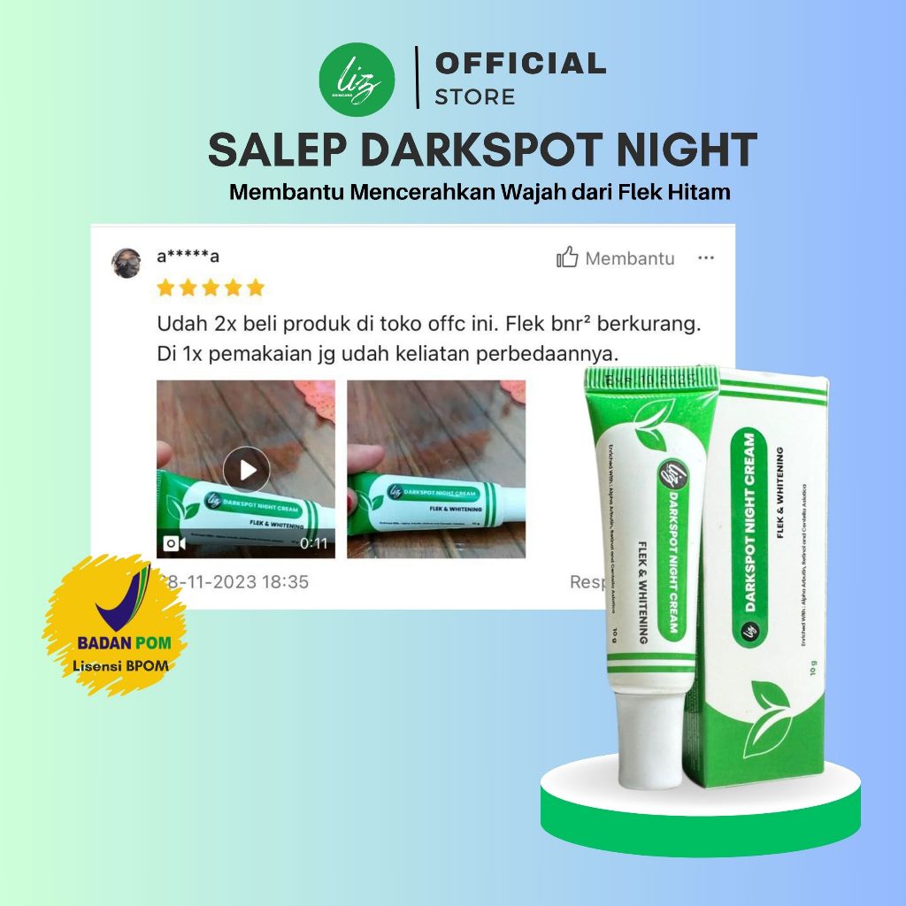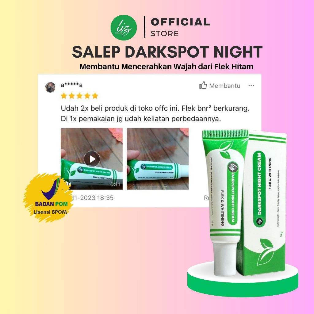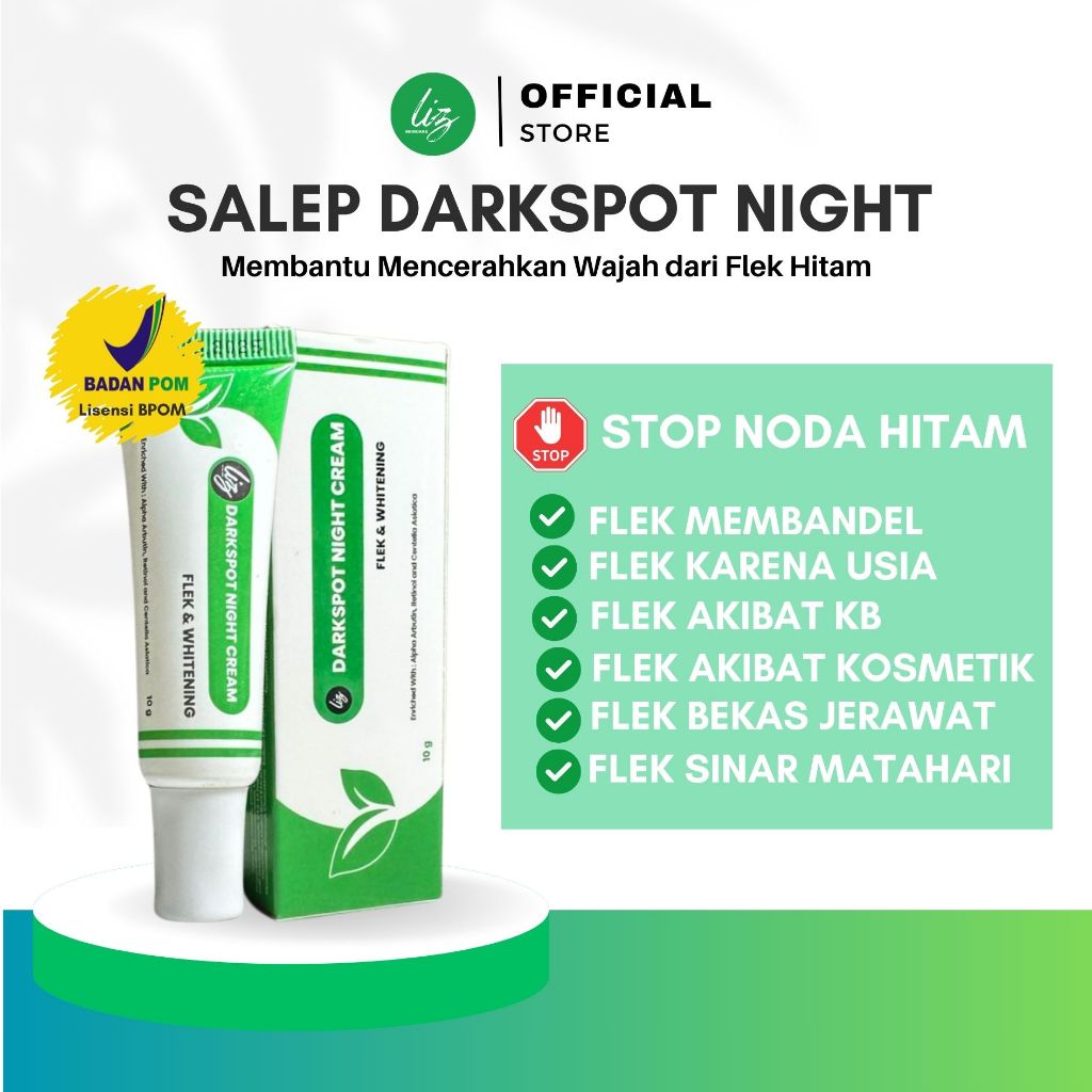 Elzet Skincare BPOM Salep Flek Malam Darkspot Night Salep Arbutin Retinol Night Whitening Cream Salep Bopeng Flek Noda Hitam Melasma Hiperpigmentasi Bekas Jerawat Salep Krim Pemutih Malam KPM Lis Skincare