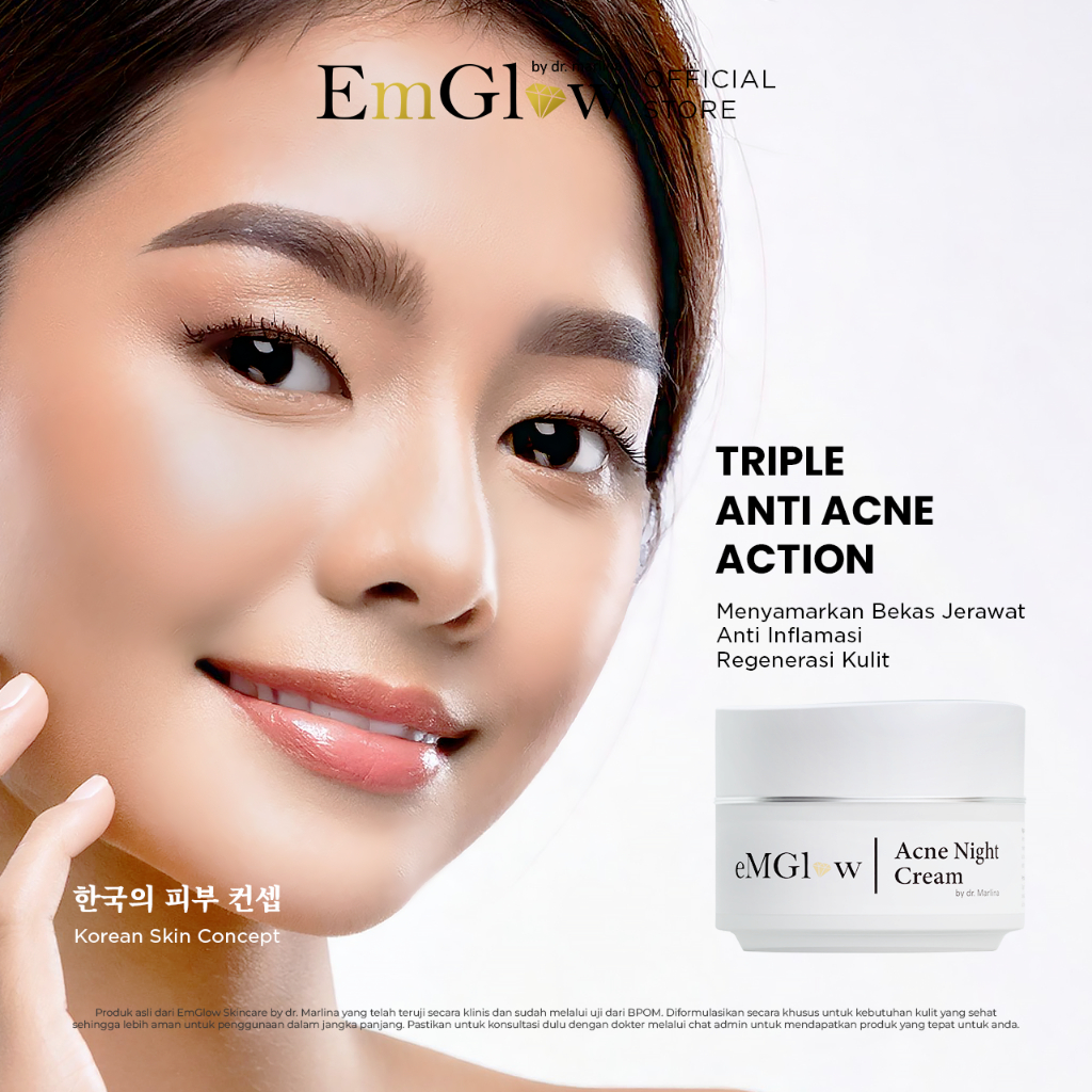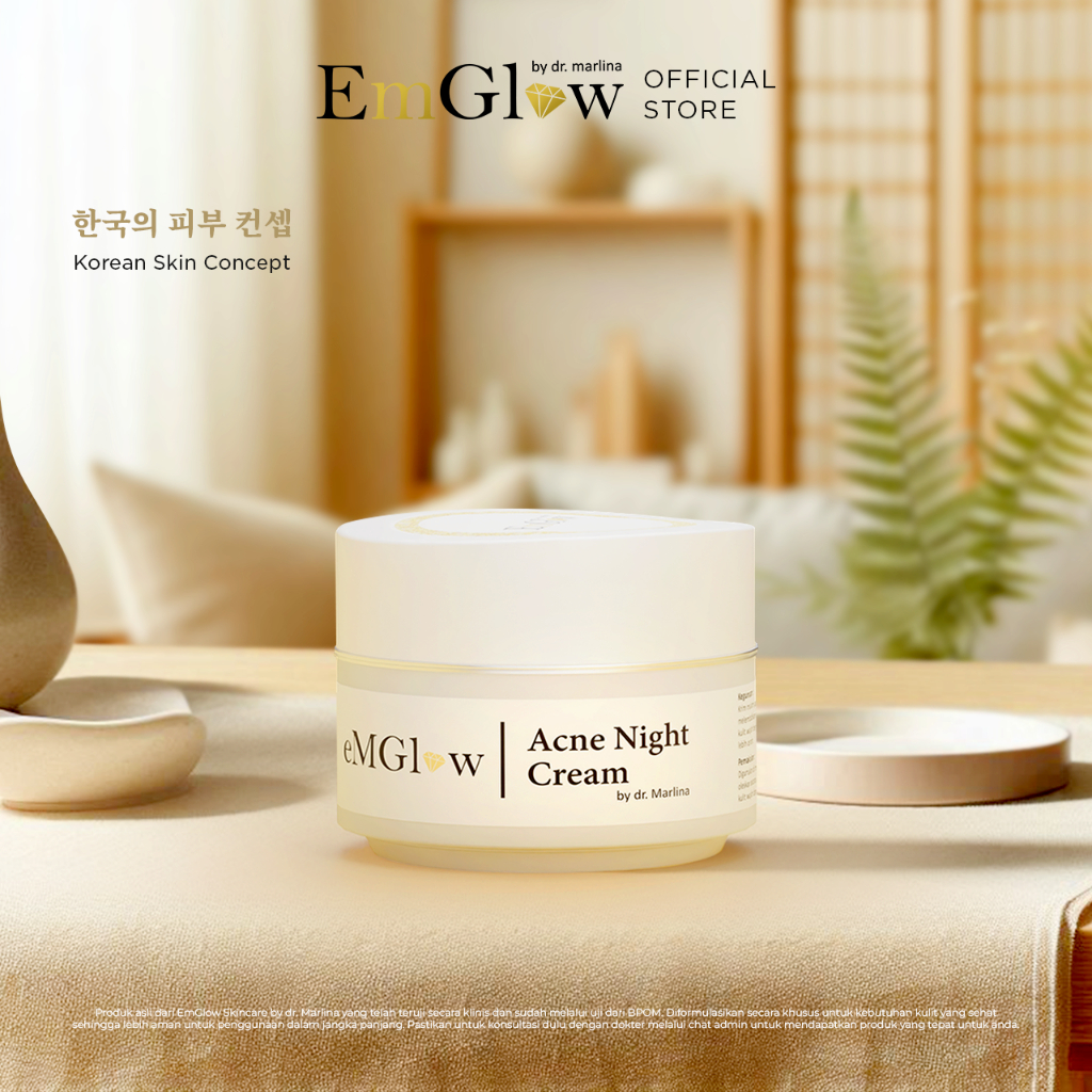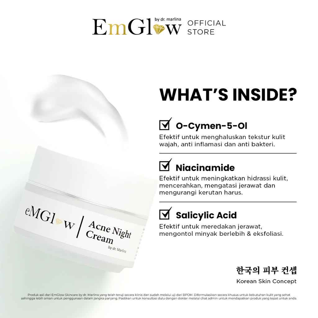 EMGLOW - ACNE NIGHT CREAM | Salicylic Acid Triple Anti Acne Action Untuk Kulit Wajah Berjerawat | Acne Care