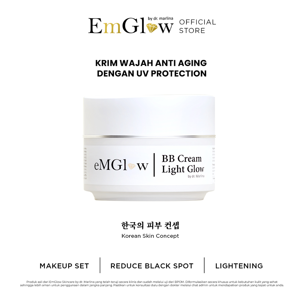 EMGLOW - BB CREAM LIGHT GLOW | Ectoin Waterbased BB Cream Aloe Vera Vit B5 & E Menutrisi Kulit Wajah