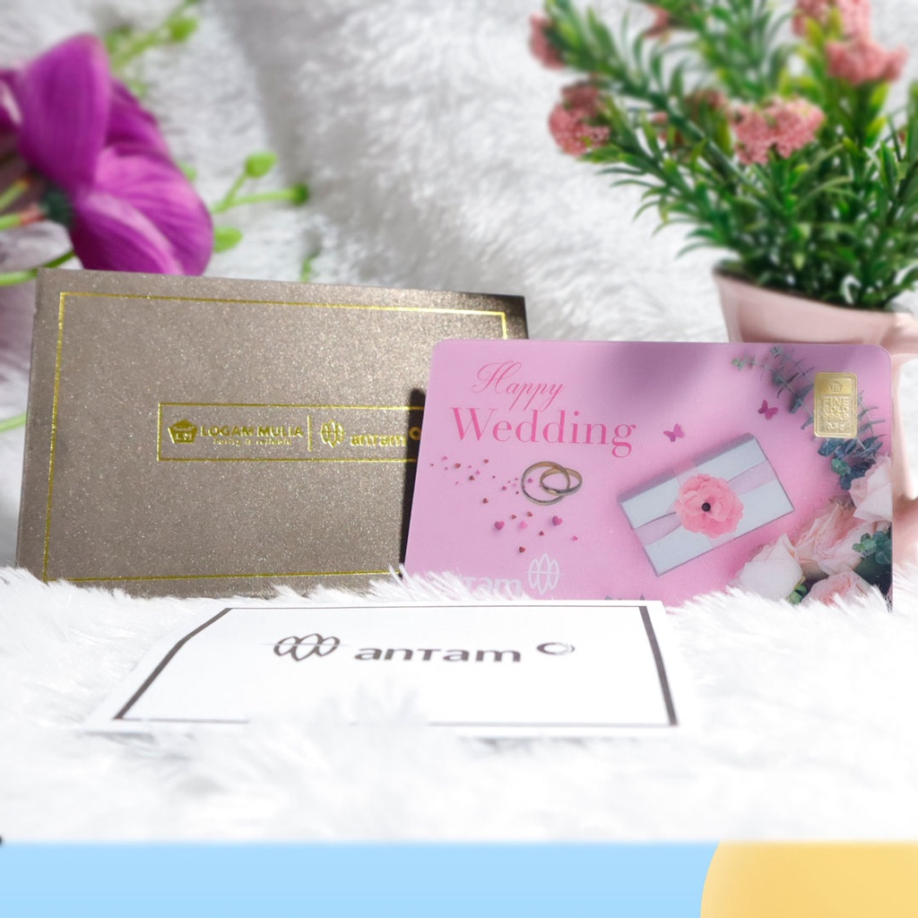 Emas Antam Logam Mulia 0,5 Gram Gift Series - Gift Card Happy Wedding Pink