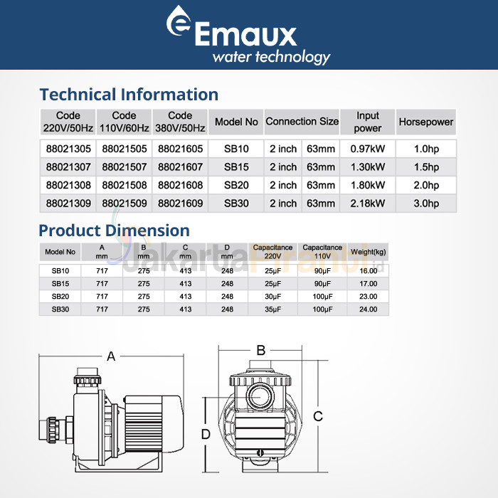 Emaux 1 HP - Mesin Pompa Air Kolam Renang 1 HP Emaux SB10 SB 10 Swimming Pool Pump Emaux Sb 10