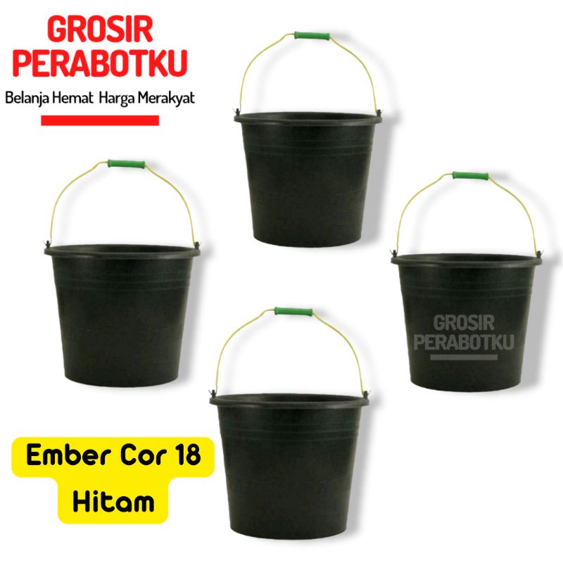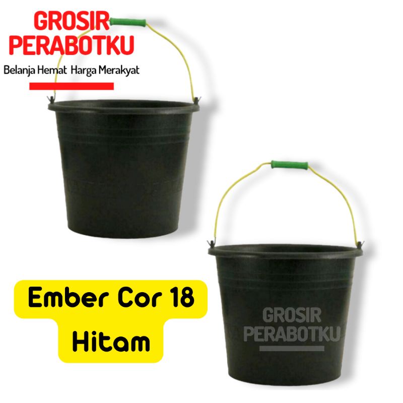 Ember Cor 18 Hitam | Ember Hitam Anti Pecah | Ember Timba Karet Anti Pecah | Timba Hitam Karet