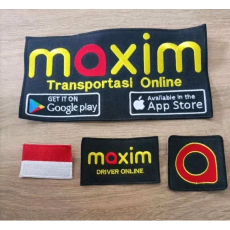Emblem Maxim 1paket Lengkap Dasar Hitam Bordir komputer Logo Maxim Driver Online