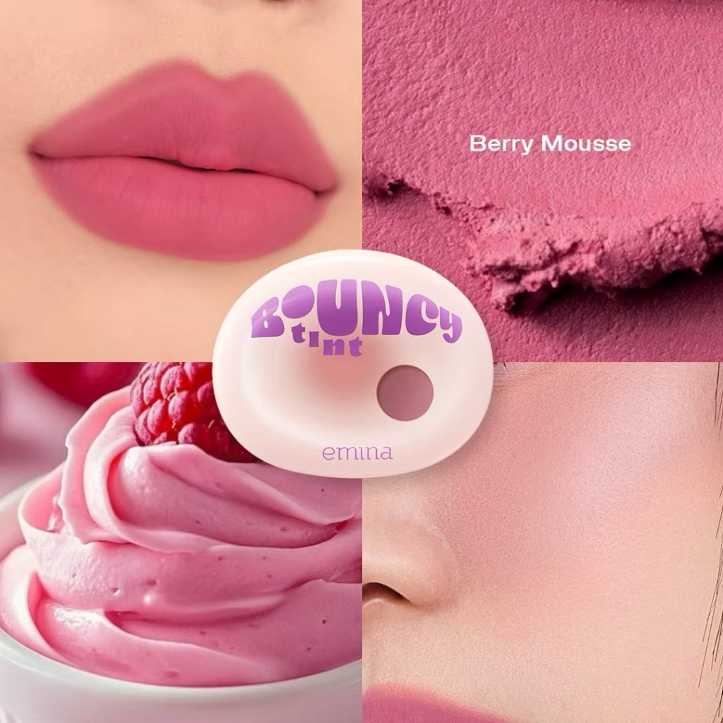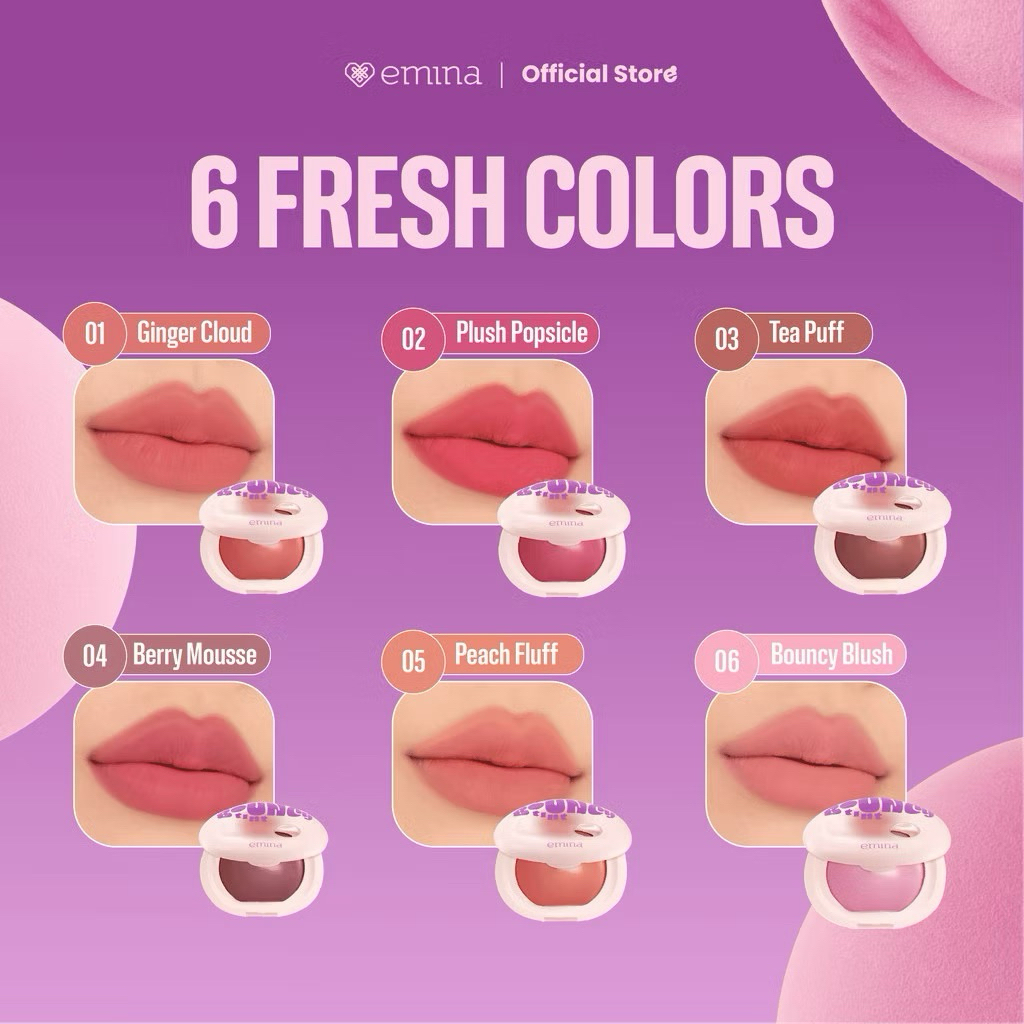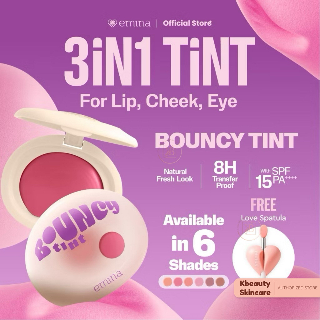 Emina Bouncy Tint 3 in 1 Lip, Cheek, & Eye - Blurry Lip Color, Lasting Stain, dilengkapi dengan SPF 15 PA+++, Marshmallow Mochi Pudding Longlasting Blush On Lip Tint Eye Shadow