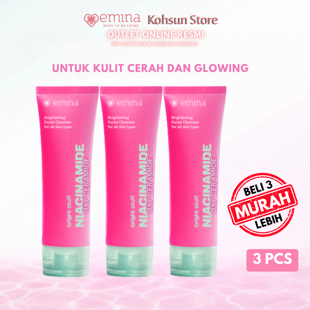 Emina Triple Pack Bright Stuff Face Wash isi 3pc - Niacinamide Oxy Ceramide Brightening Skin Barrier