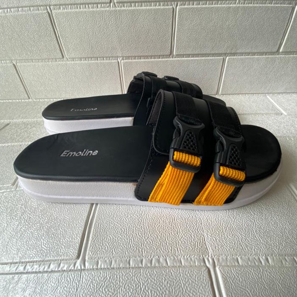 Emoline Minzi Slide Sandal Pria Casual - Sandal Slide Pria Sol Putih Upper Hitam